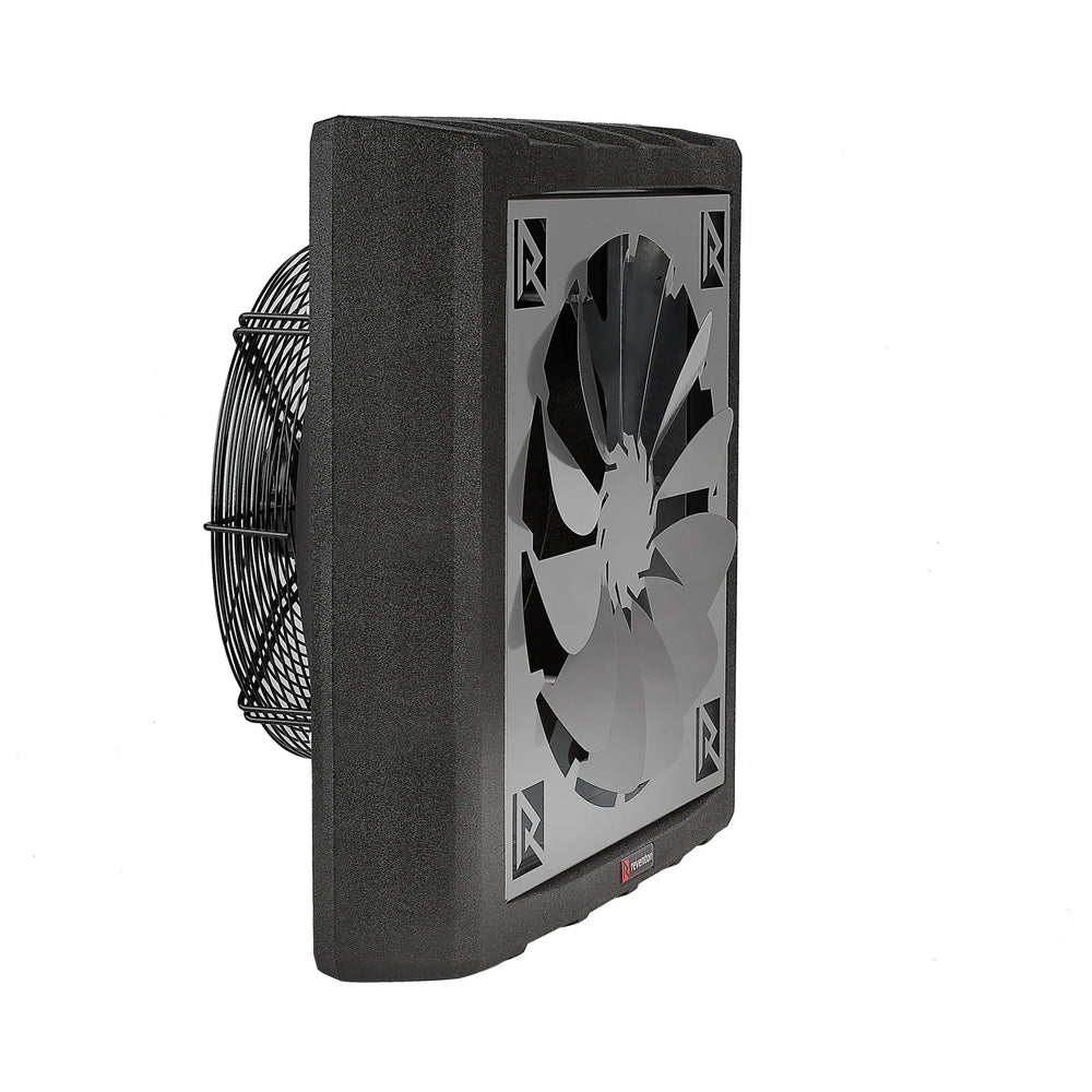 Il sistema di diffusione convoglia l’aria calda dalla batteria e la distribuisce radialmente grazie a un’uscita circolare. In questo modo il calore si propaga uniformemente su tutta la superficie del locale.