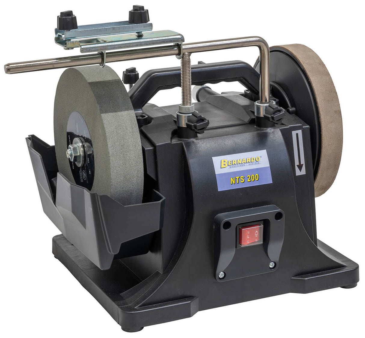 La Bernardo NTS 200 è un’affilatrice a secco-umido progettata per garantire affilature precise e sicure. Grazie alla mola in corindone bianco da 200 mm che lavora in vasca ad acqua (rimovibile), l’utensile viene raffreddato durante la lavorazione, evitando il rischio di surriscaldamento o di rinvenimento. La velocità ridotta di 115 giri/min riduce il rischio di scintille e assicura un’elevata sicurezza operativa. È dotata di supporto universale regolabile in altezza, compatibile anche con accessori di altri produttori, e di disco in pelle per la lucidatura. Ideale per coltelli, forbici, asce, scalpelli, lame di pialle e utensili da tornitura, la NTS 200 è adatta ad hobbisti esigenti, artigiani e professionisti che necessitano di lame affilate in breve tempo. Con un motore da 120 W e struttura robusta in acciaio, unisce design moderno, prestazioni elevate e massima affidabilità.