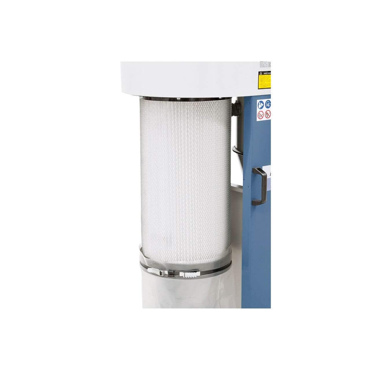 • Filtro a cartuccia in poliestere con residuo polveri di 0,1 mg/m³