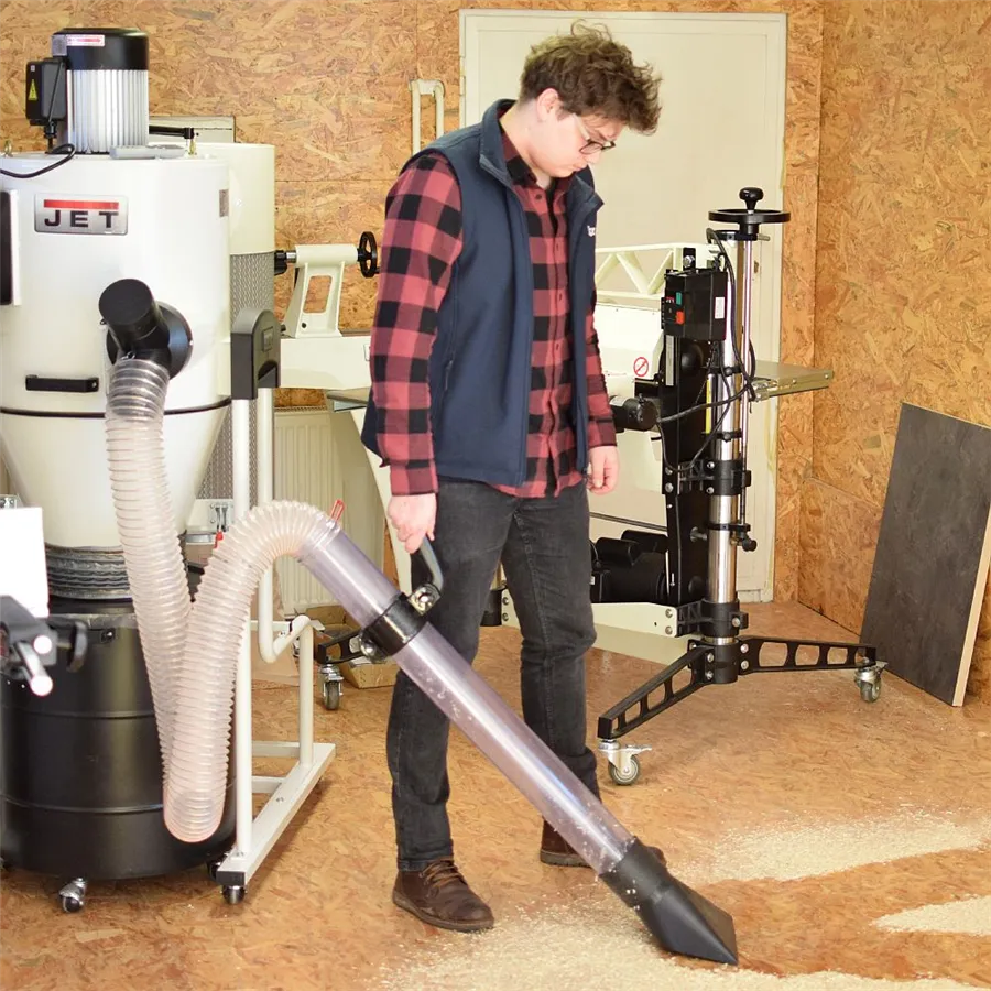 Eliminate efficacemente tutti i residui e la polvere dal pavimento del vostro laboratorio con questo pratico accessorio. L'Accessorio Aspiratutto da Pavimento da 100mm si collega semplicemente a un tubo flessibile del diametro di 100 mm, attaccato a un estrattore di polvere, permettendo di pulire l'area di lavoro con estrema facilità. Progettato per raccogliere sia i rifiuti di grandi dimensioni che la polvere più fine, richiede l'utilizzo di un estrattore con una capacità di 1000 m3/h o superiore per garantire un'efficacia ottimale.