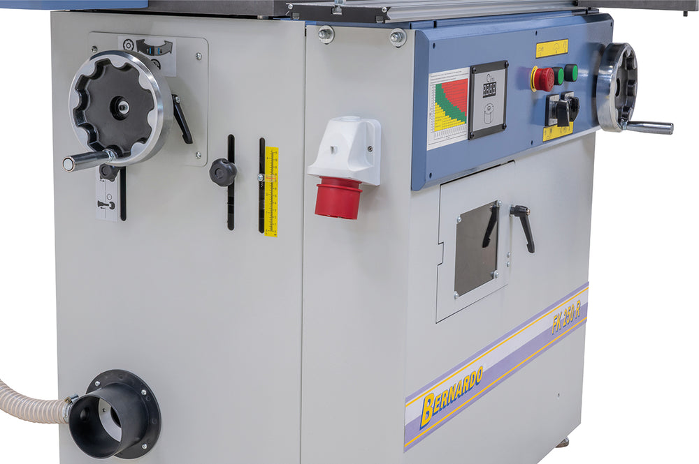 La Bernardo FK 250 R / 400V è una sega-fresa combinata compatta e versatile, ideale per hobbisti, artigiani e piccoli laboratori di falegnameria. Grazie al tavolo scorrevole con guida in alluminio e alla struttura in ghisa pesante, garantisce tagli e fresature precisi, senza vibrazioni.