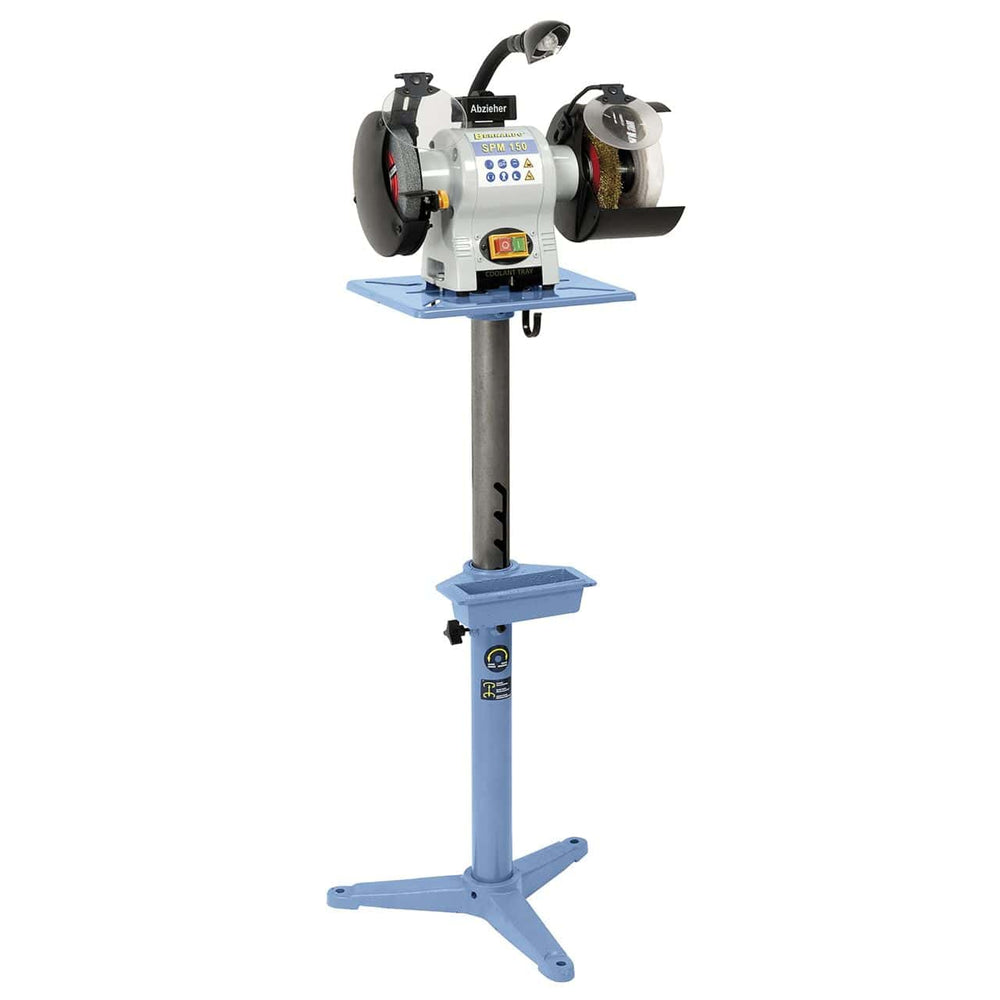 Il basamento modello F è una struttura leggera e funzionale, progettata per macchine da affilatura con mola fino a 175 mm di diametro. Dotato di vaschetta per l’acqua di raffreddamento, garantisce comfort e sicurezza durante la lavorazione. L’altezza regolabile lo rende adatto a diverse postazioni di lavoro.