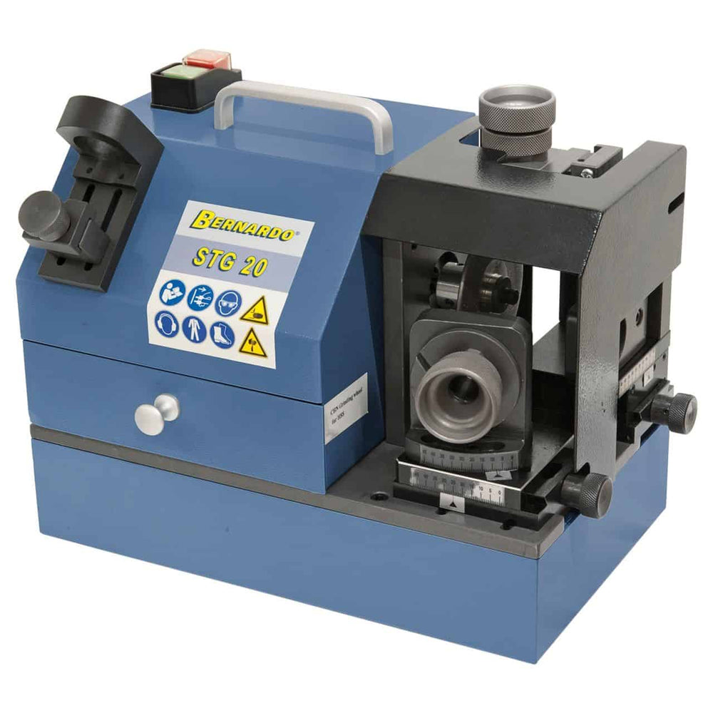 L’Affilatrice Bernardo STG 20 è una macchina portatile e compatta, progettata per l’affilatura precisa di maschiatori con 2, 3 e 4 scanalature. È adatta per utensili in HSS e metallo duro (carbide), garantendo risultati rapidi e accurati grazie alla struttura robusta e al rotore con cuscinetti a sfera di precisione che assicura una rotazione fluida. Il campo di lavoro va da M5 a M20, con regolazione dell’angolo di punta da 5° a 30°, permettendo un adattamento ottimale alle diverse geometrie di taglio. Compatta e leggera (14 kg), è ideale per officine e reparti manutenzione. Il motore da 0,16 kW a 4400 rpm assicura prestazioni costanti, mentre la semplicità d’uso consente un’affilatura veloce anche per operatori meno esperti. Fornita completa di mola CBN ad alte prestazioni, 6 pinze ER 20 (Ø 5–14 mm) e portapinze, la STG 20 rappresenta una soluzione efficiente e conveniente per prolungare la vita utile dei maschiatori.