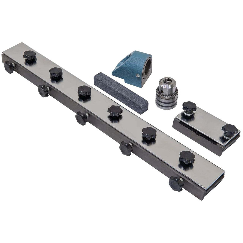 Sì, piastra di bloccaggio coltello, morsetto da 12 cm e mandrino portapunte con bussola girevole sono inclusi.