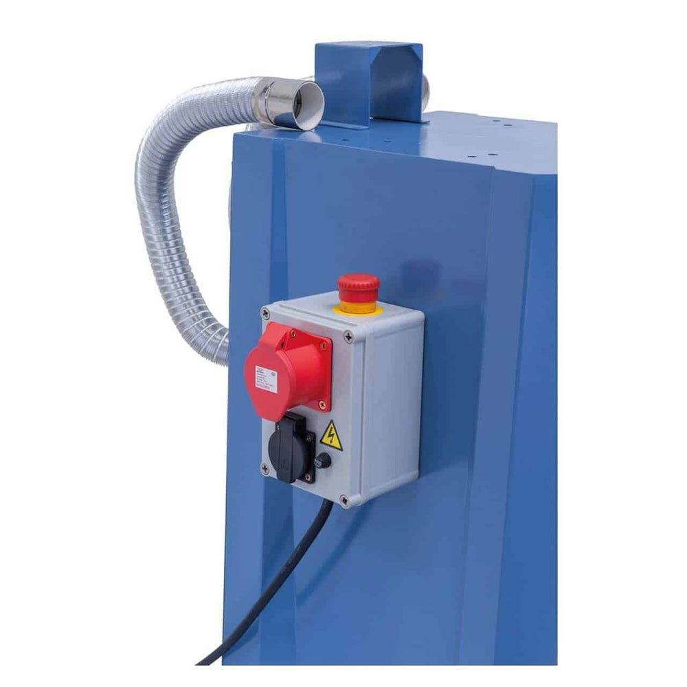 Il basamento Bernardo UGA 1 con aspirazione integrata è la soluzione compatta e funzionale per combinare sostegno macchina e sistema di aspirazione in un unico dispositivo. Grazie all’avviamento automatico, il sistema si accende e si spegne insieme alla macchina collegata, semplificando l’uso e aumentando l’efficienza. Con una capacità di aspirazione di 190,8 m³/h e due attacchi Ø 50 mm, è ideale per collegare macchine di piccole e medie dimensioni come levigatrici e smerigliatrici. Il cassetto posteriore estraibile permette una facile raccolta di polveri e trucioli, mentre il serbatoio dell’acqua garantisce una filtrazione ottimale dell’aria, reimmessa pulita nell’ambiente di lavoro. La struttura compatta (340 x 420 mm di area di appoggio, altezza 805 mm) consente di risparmiare spazio, mantenendo una potenza di 1,5 kW con alimentazione trifase 400 V. Soluzione ideale per laboratori e officine con spazi ridotti ma alte esigenze di pulizia.