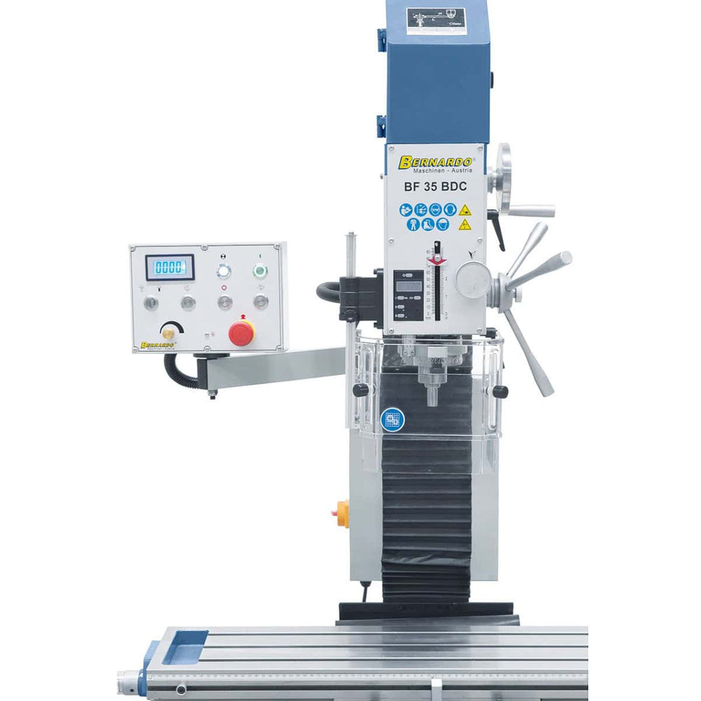 La trapano-fresatrice Bernardo BF 35 BDC è una macchina versatile, progettata per foratura, fresatura e filettatura con precisione. Grazie al motore a corrente continua e alla regolazione continua della velocità (100–3000 rpm), garantisce una coppia ottimale e un adattamento ideale al pezzo da lavorare.