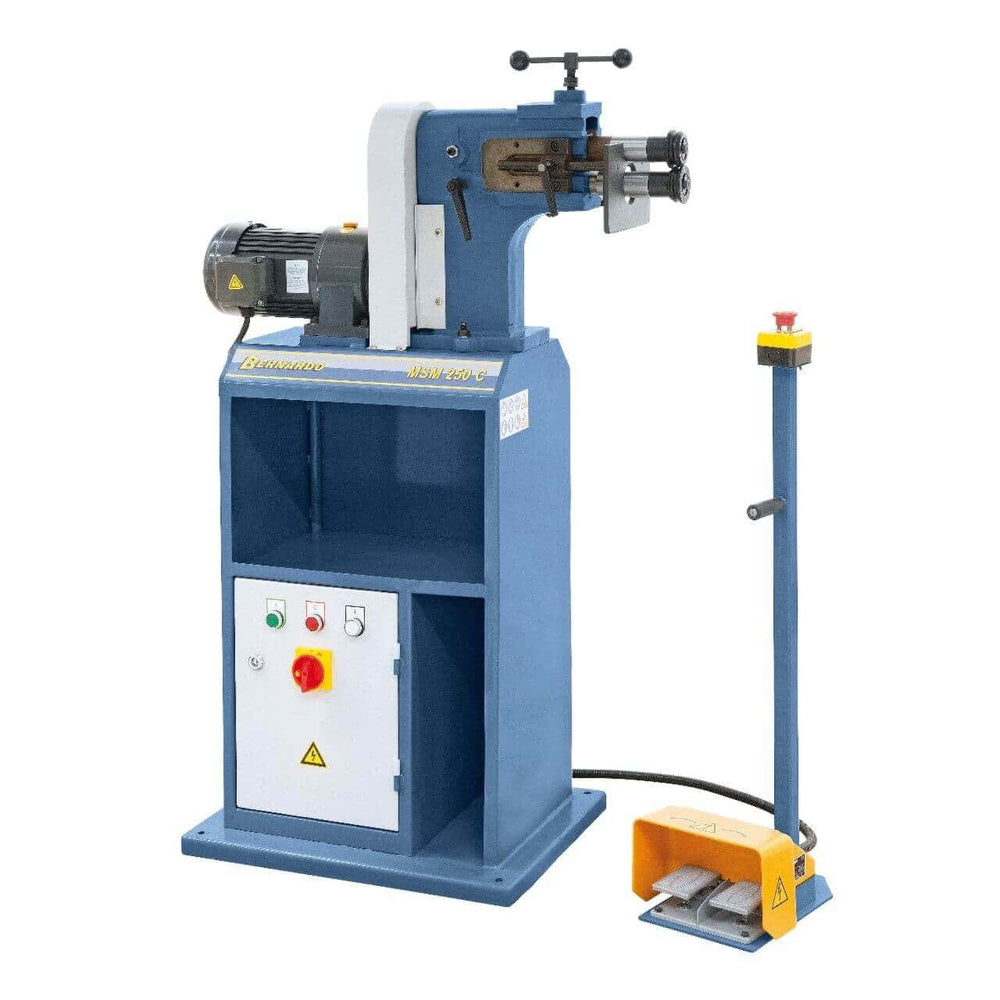 La Bernardo Bordatrice elettrica MSM 250 C è una macchina professionale per bordatura e flangiatura di lamiere fino a 1,2 mm di spessore (acciaio 400 N/mm²). Con una profondità di lavoro di 250 mm (ridotta a 140 mm con arresto montato) e alberi da 26 mm di diametro, consente lavorazioni precise e uniformi. La velocità costante di 32 giri/min, generata da un motore elettrico da 0,75 kW / 400 V, garantisce produttività e qualità anche in uso continuo. La struttura robusta da 125 kg assicura stabilità e lunga durata. Inclusi nella dotazione 4 coppie di rulli per bordatura e flangiatura, arresto pezzo regolabile, pedale con spegnimento di emergenza e chiave per rulli. Una soluzione affidabile e sicura per officine professionali, carpenteria e lavorazioni artigianali avanzate.