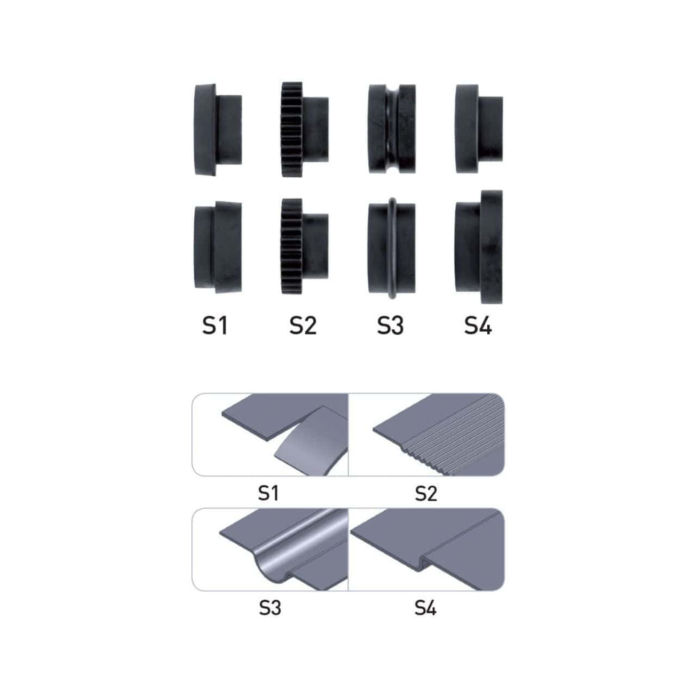 • 4 coppie di rulli per bordatura e flangiatura incluse