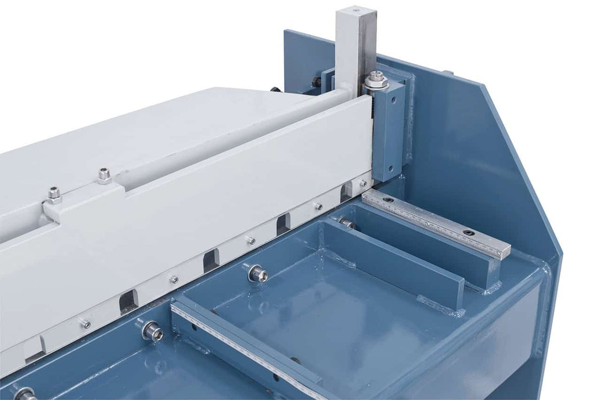 La Bernardo Cesoia a pedale FS 2450 x 1,2 è una macchina robusta e precisa, ideale per il taglio di pannelli di grandi dimensioni. Con una lunghezza di taglio di 2450 mm e una capacità fino a 1,2 mm di spessore su lamiera d’acciaio (400 N/mm²), è perfetta per officine, carpenterie leggere e lavorazioni in serie. La solida struttura in ghisa assicura stabilità anche sotto sollecitazioni elevate, mentre le lame a doppio taglio in acciaio di qualità garantiscono risultati netti e privi di bave. L’azionamento a pedale consente di mantenere libere le mani per un posizionamento ottimale del pezzo. È dotata di arresto posteriore regolabile fino a 600 mm, tavolo con scala millimetrica e arresto ad angolo retto, oltre a supporto anteriore per pannelli di grande formato. Con un peso di 550 kg e dimensioni 2770 x 1900 x 1050 mm, rappresenta una soluzione professionale stabile, affidabile e durevole.