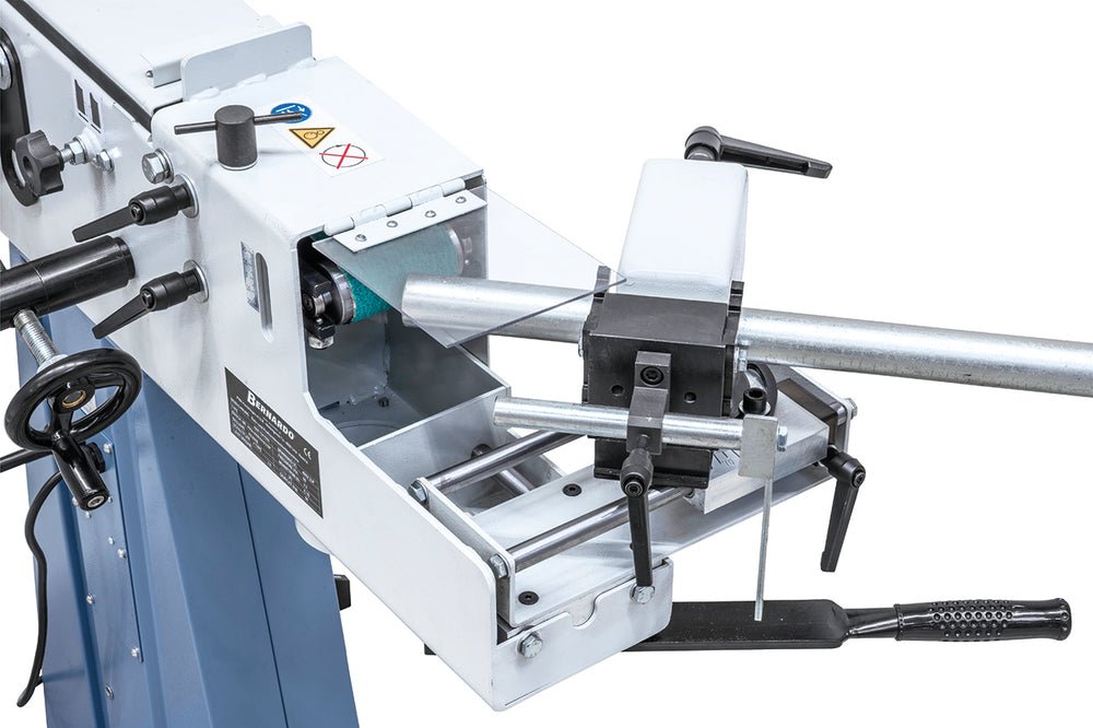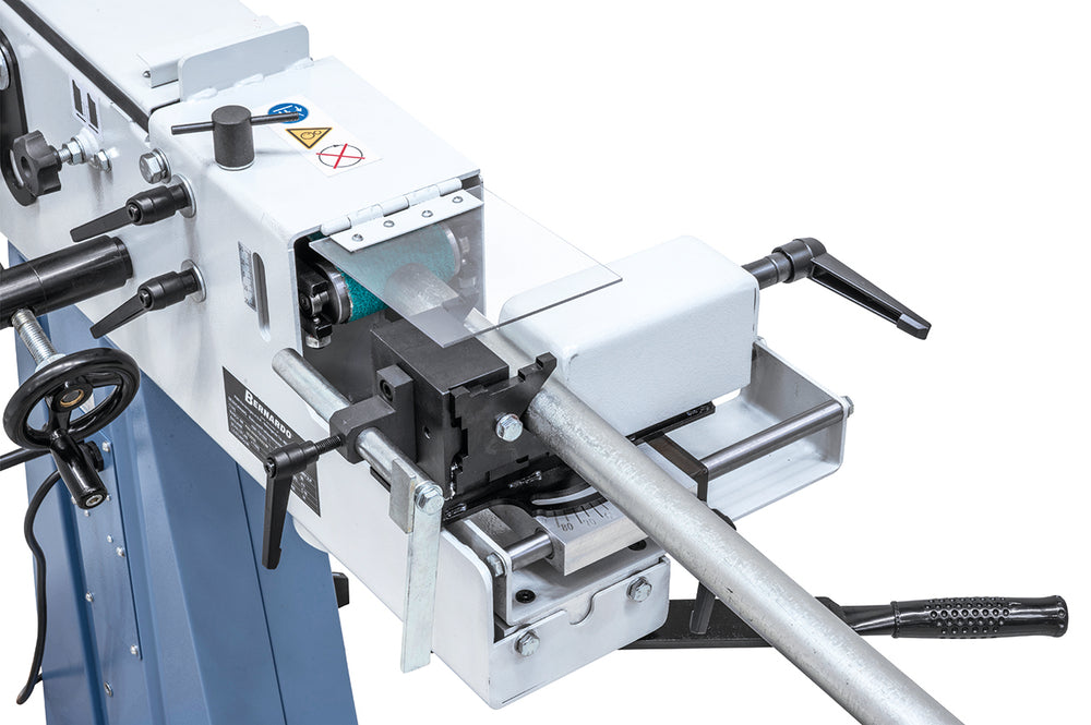 La Bernardo KBR 75 x 1500 / 400 V è una levigatrice industriale multifunzione progettata per la lavorazione professionale di tubi, profili, bordi e superfici. Sul lato frontale permette la levigatura delle estremità dei tubi, mentre sul retro consente la levigatura tonda e piana. La parte superiore è ideale per la levigatura in piano, grazie a un ampio supporto con rivestimento in grafite che migliora la scorrevolezza del nastro.