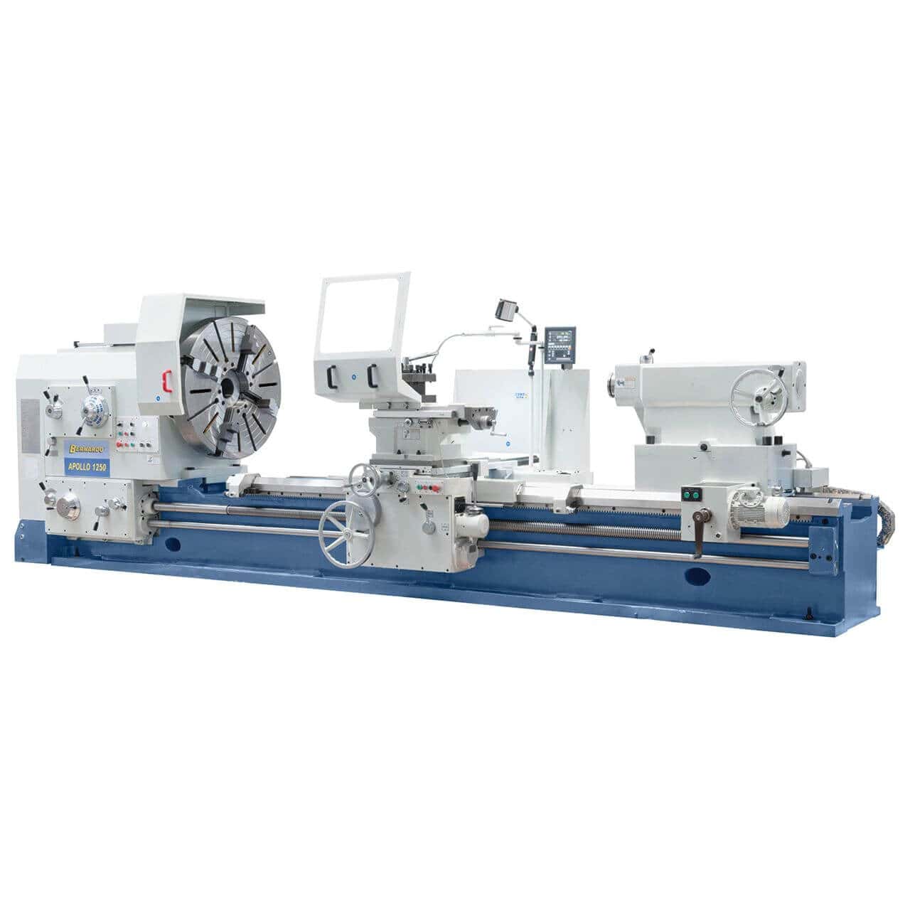 Il Bernardo Apollo 1000 x 3000 è un tornio parallelo pesante, progettato per la lavorazione di pezzi di grandi dimensioni fino a 6.000 kg. Con una distanza tra le punte di 3000 mm e un diametro tornibile sul banco di 1000 mm, questa macchina garantisce la massima stabilità grazie al bancale rinforzato e alle guide temprate e rettificate.