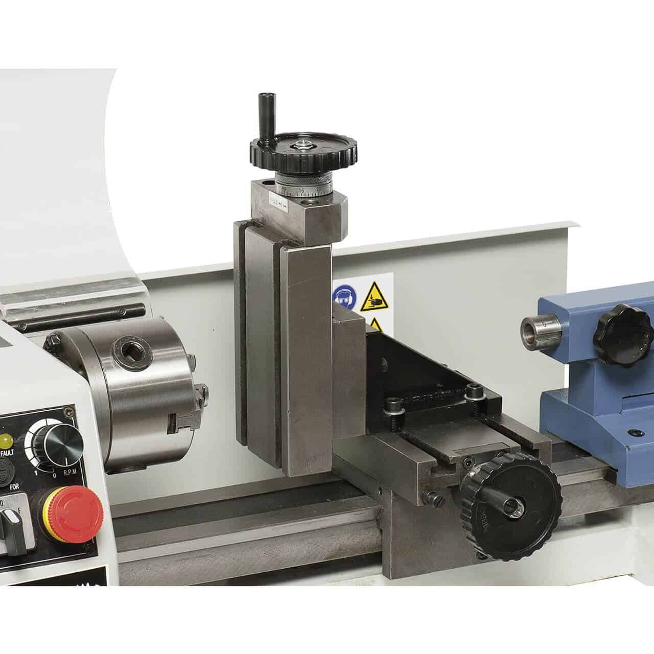Il tornio da banco Bernardo Hobby 250 / 230 V è un mini tornio ultracompatto, perfetto per hobbisti e principianti che desiderano iniziare con le lavorazioni di precisione. Con una distanza tra le punte di 250 mm e un’altezza di centro di 75 mm, consente la lavorazione di pezzi fino a Ø 150 mm. Il foro mandrino da 10 mm (cono MT2) e la velocità regolabile in continuo da 100 a 2000 rpm garantiscono flessibilità nelle piccole applicazioni. È fornito con mandrino autocentrante Ø 80 mm, torretta portautensili a 2 posizioni e contropunta rotante MT1. Con un peso di soli 23 kg e dimensioni ridottissime, può essere facilmente collocato su qualsiasi banco da lavoro. Una soluzione pratica, leggera ed economica per chi cerca un tornio hobbistico semplice ma preciso.