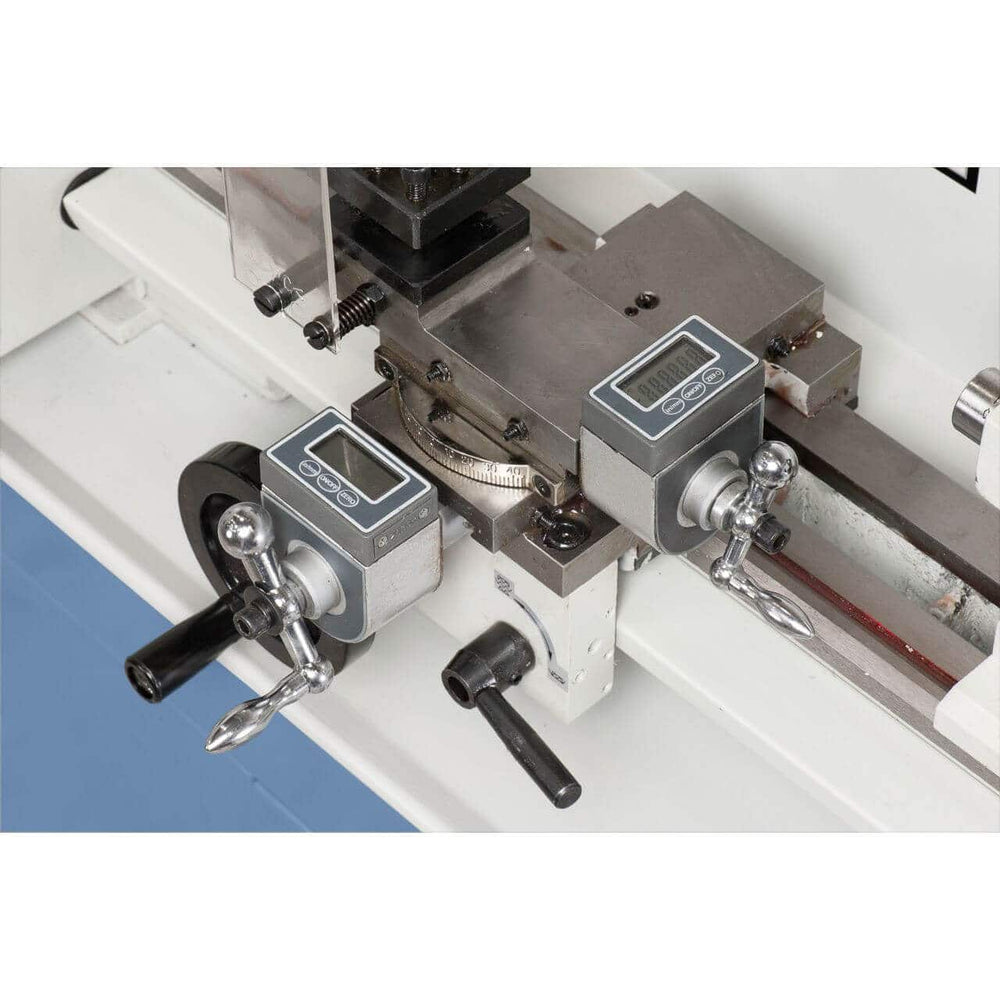 Il tornio da banco Bernardo Hobby 350 VD è un mini tornio compatto e leggero, ideale per hobbisti e piccoli laboratori che desiderano precisione e facilità d’uso. Con una distanza tra le punte di 350 mm e un’altezza di centro di 90 mm, consente la lavorazione di pezzi fino a Ø 180 mm. Il foro mandrino da 21 mm (cono MT3) e la regolazione continua della velocità (100 – 1200 / 100 – 3000 rpm) offrono grande versatilità. È dotato di mandrino autocentrante Ø 80 mm, torretta portautensili a cambio rapido con 4 inserti e display digitale per la velocità e gli spostamenti del carro. Con un peso di soli 44 kg e dimensioni compatte, può essere facilmente collocato su banco da lavoro, garantendo stabilità e affidabilità. Una soluzione ideale per chi cerca un tornio da banco pratico e preciso.