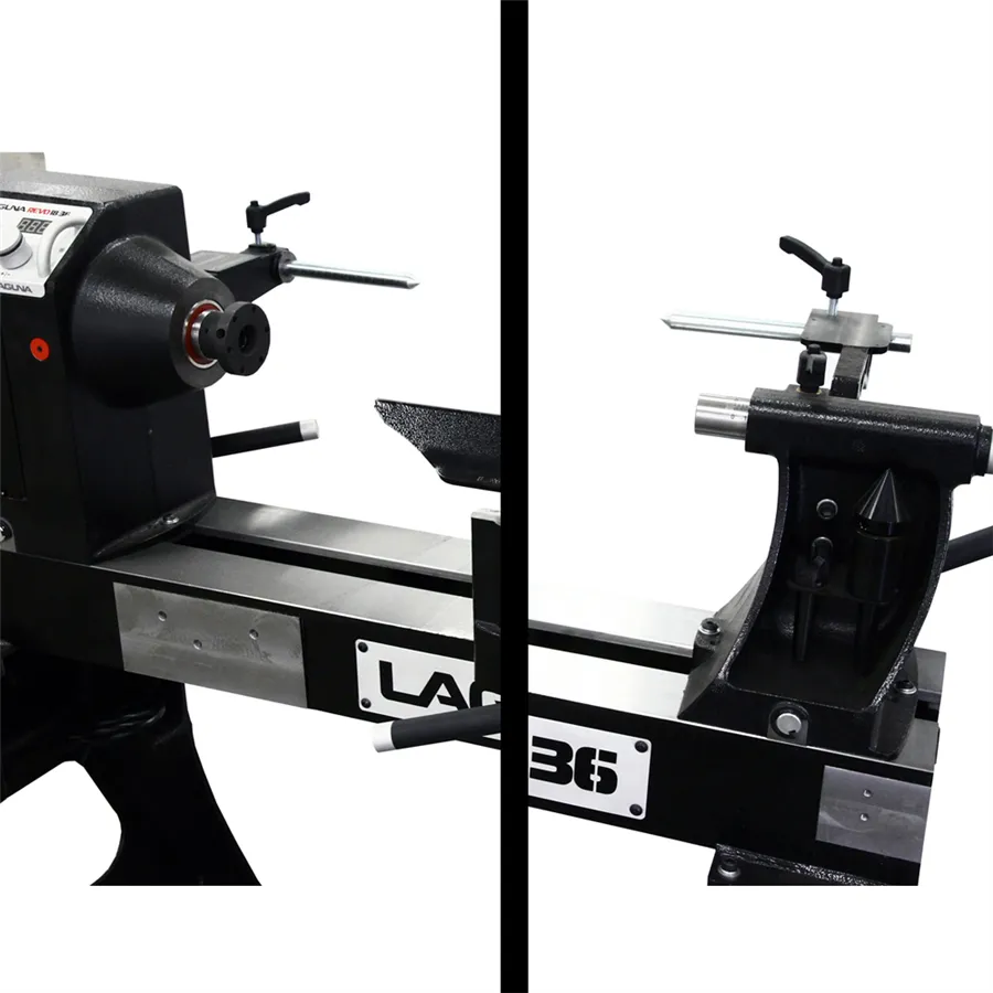 Il Comparatore per torni LAGUNA Revo 1836 e 2436 è un accessorio professionale progettato per riprodurre pezzi torniti identici con facilità e precisione. Grazie a due punte in acciaio montate su portapunte dedicati, il sistema consente di confrontare direttamente il pezzo in lavorazione con un modello guida posto dietro di esso.