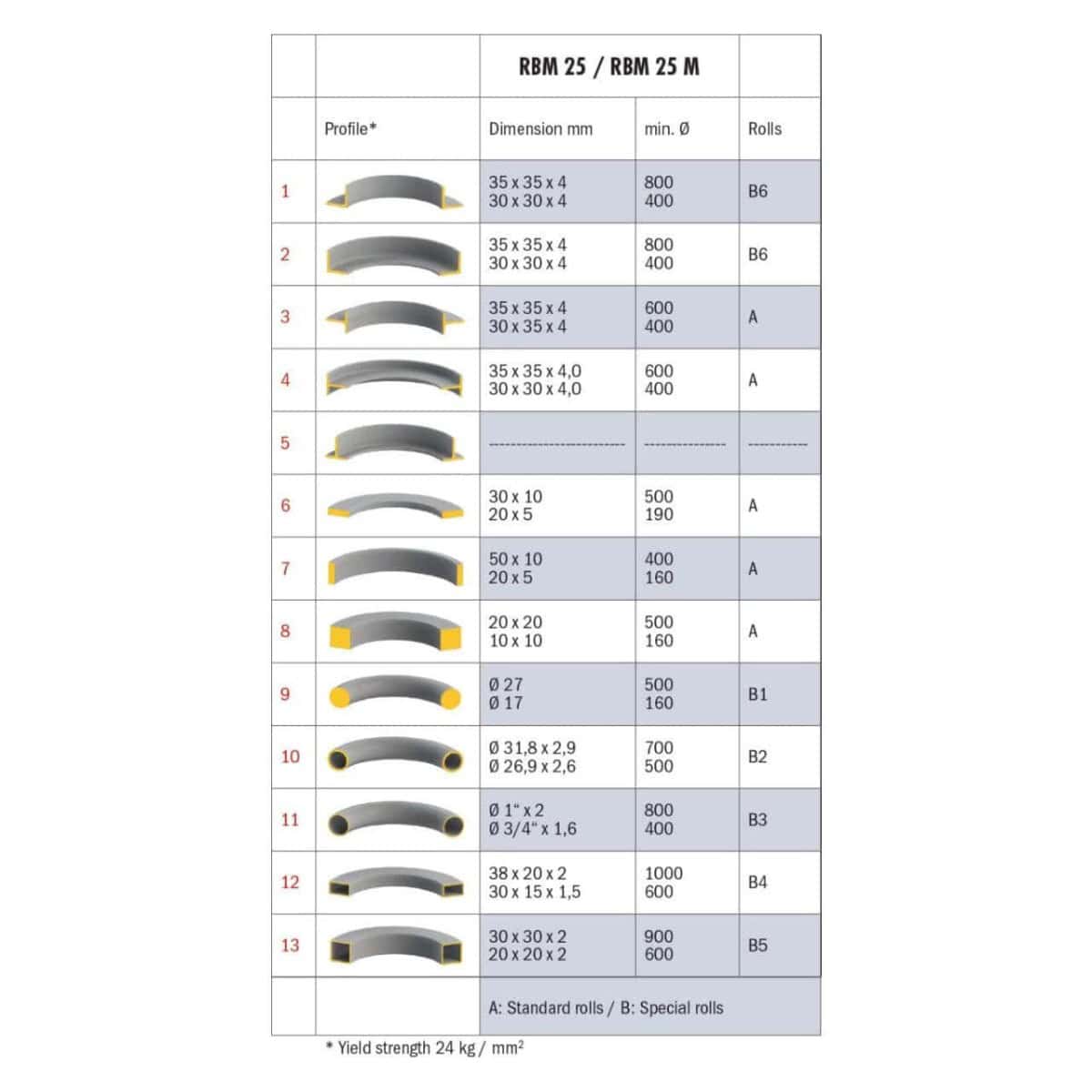 • Rulli standard inclusi per la curvatura di profili quadrati