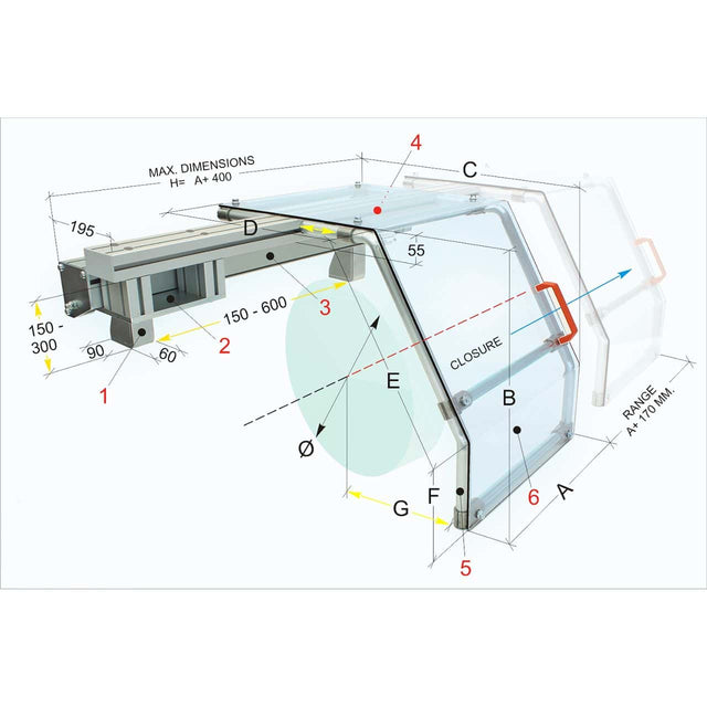 Si fissa sulla testa della macchina e protegge l'operatore dal contatto diretto con i componenti rotanti del mandrino e da trucioli e schizzi di lubrificanti e refrigeranti.