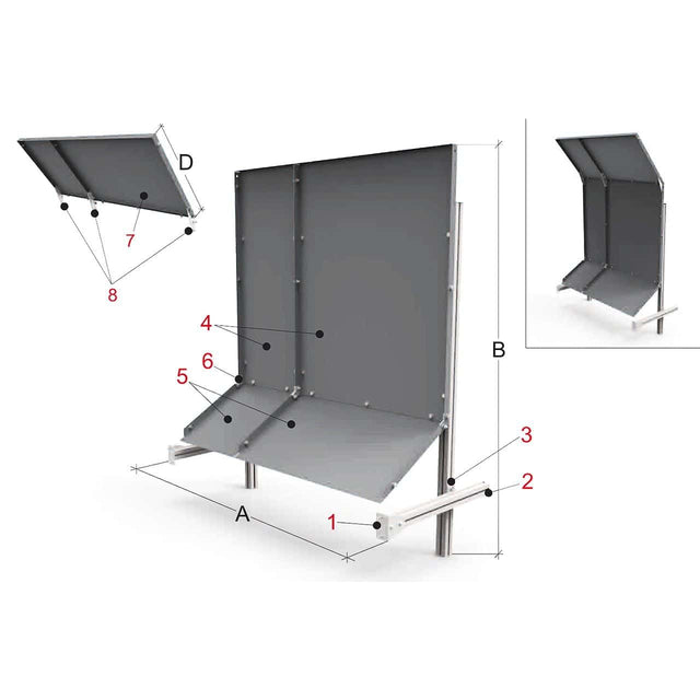Questa protezione può essere installata sulla parte inferiore del corpo del tornio oa pavimento, grazie ad un sistema di bracci regolabili realizzati con profili in alluminio. A richiesta l'articolo PTO31/.../T è disponibile con copertura inclinata incorporata per una migliore protezione verso l'alto.