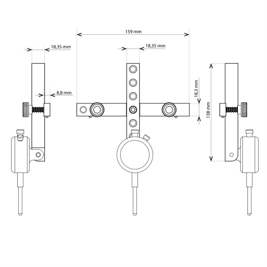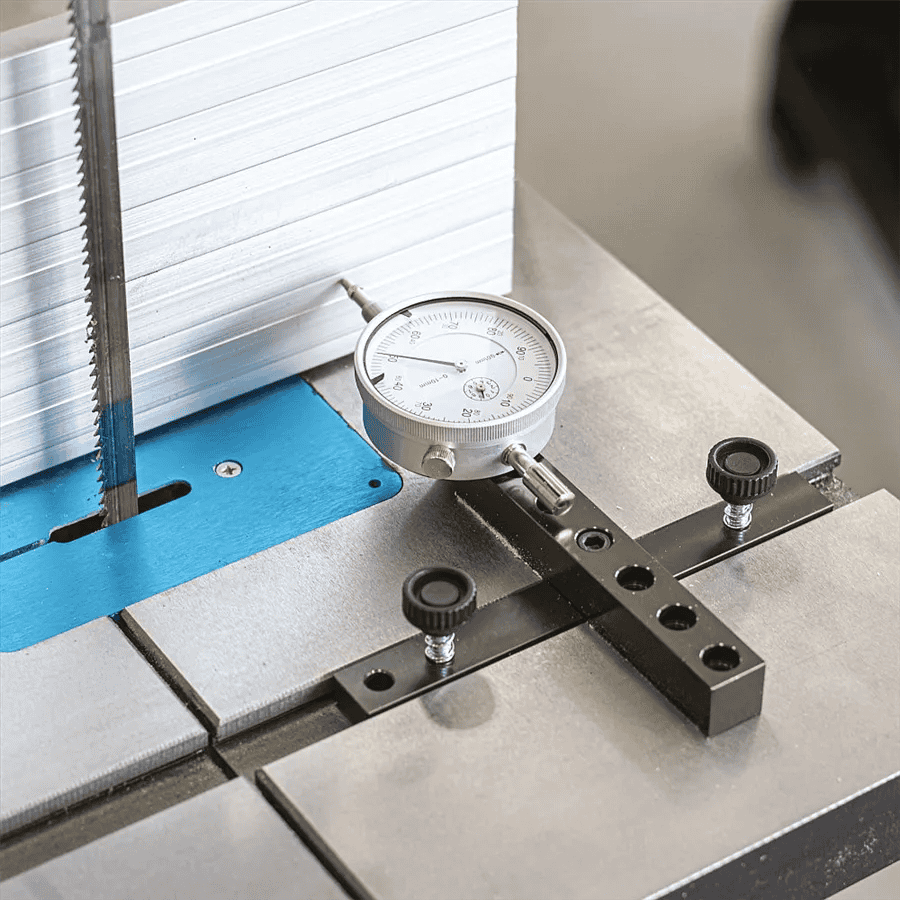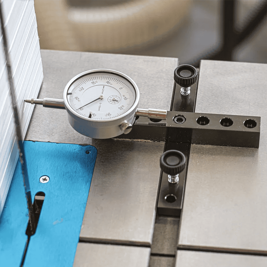 Il Dispositivo di Allineamento Seghe è utilizzato per regolare con precisione lame e guide fuori allineamento. Una regolazione precisa è possibile grazie a un perno sensibile a molla sul quadrante con una precisione di 0,01 mm. Il dispositivo è fornito con quadrante, barra di montaggio e barra per scanalatura a coda di rondine. Il quadrante viene montato sulla barra di montaggio, che a sua volta viene inserita sopra la barra per la scanalatura a coda di rondine. L'intero dispositivo si adatta a qualsiasi scanalatura per guide a coda di rondine. Uno strumento inestimabile per coloro che cercano precisione e risultati di qualità.