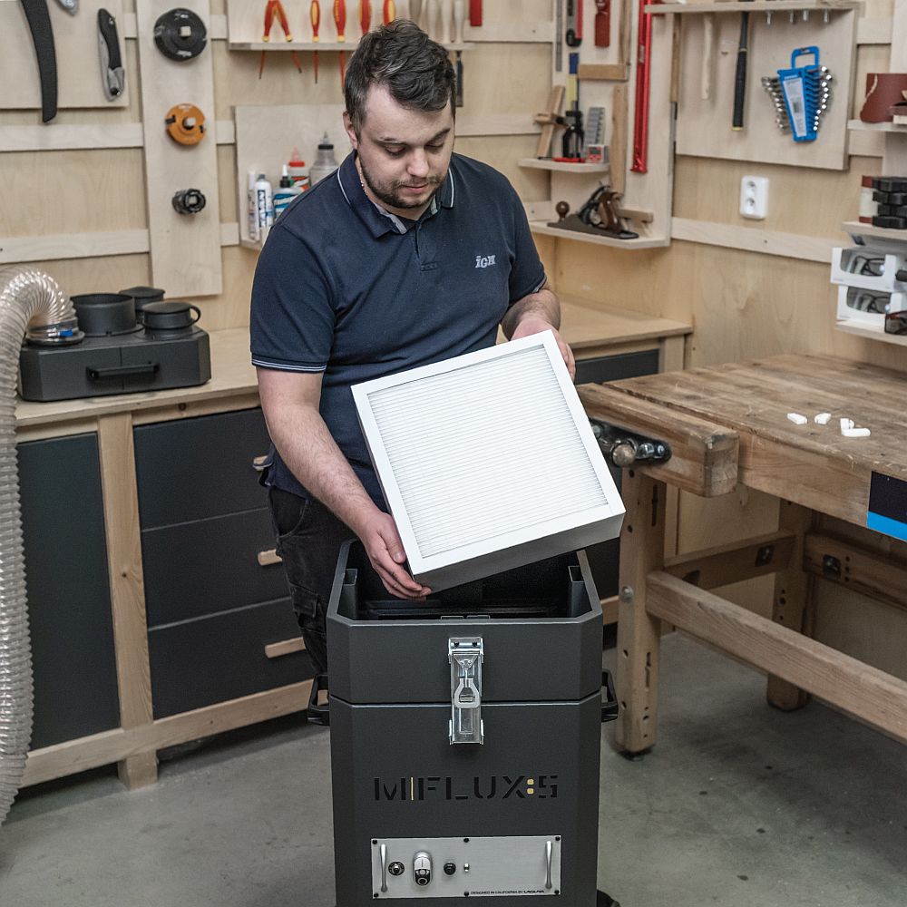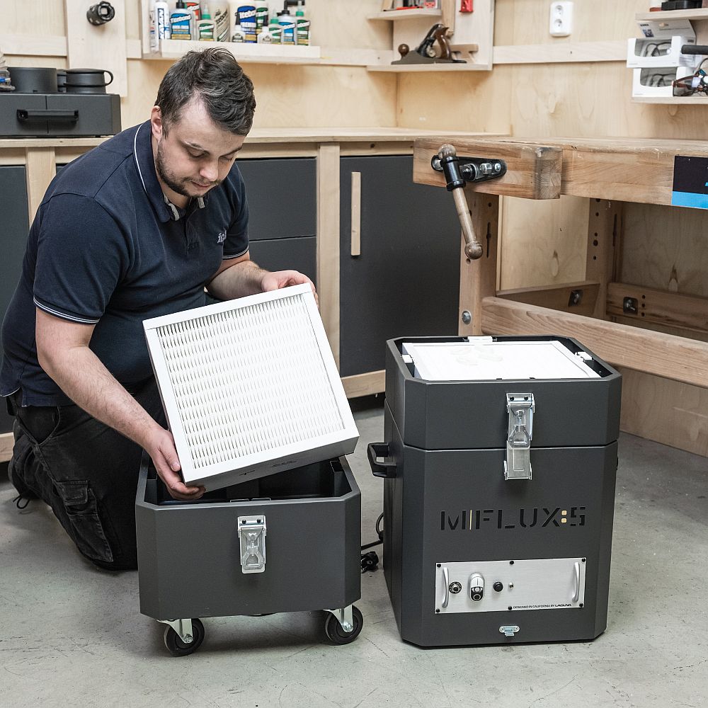 Sì, grazie al doppio filtro HEPA integrato, il MFlux 5 è in grado di catturare il 99,99% delle particelle superiori a 0,3 micron, comprese le polveri più sottili prodotte dalla lavorazione del legno o dai laser da taglio.