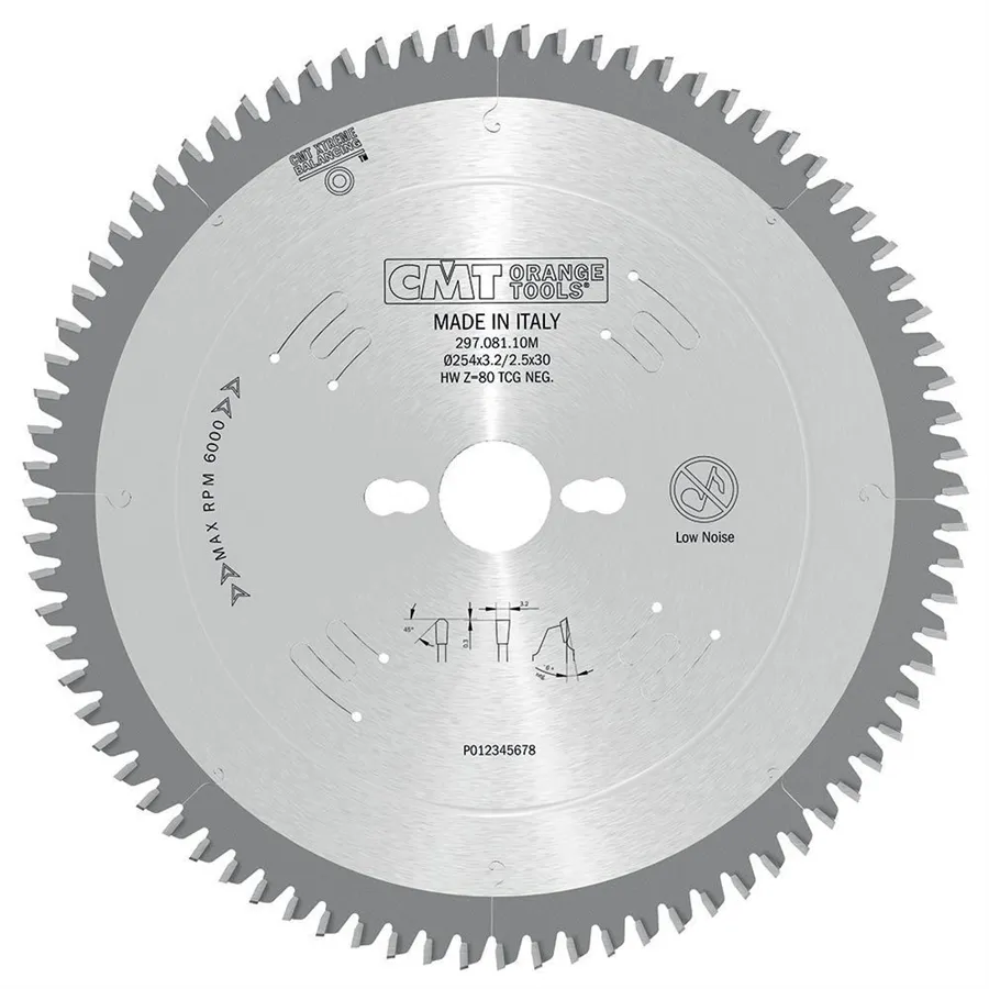 Lama sega con angolo di taglio negativo. Progettata per elevate prestazioni, tagli di alta qualità e lunga durata del filo. La lama CMT per metalli non ferrosi e plastica è ideale per tagliare con seghe radiali e circolari.