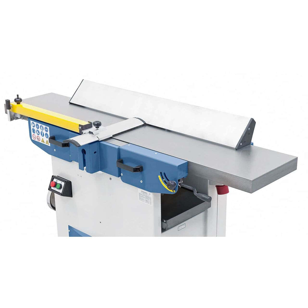 La pialla a filo e spessore Bernardo AD 310 S è una macchina professionale dotata di albero a spirale con 52 inserti in metallo duro (TCT), che riduce la rumorosità fino al 50% e offre una durata fino a 20 volte superiore rispetto ai coltelli tradizionali. Gli inserti possono essere ruotati o sostituiti singolarmente, permettendo una manutenzione rapida e conveniente. I tavoli in ghisa indeformabile e il piano a spessore con colonna centrale garantiscono planarità, precisione e stabilità durante la lavorazione. La recinzione in alluminio anodizzato inclinabile da 90° a 45° consente lavorazioni angolari versatili, mentre il motore trifase da 3,0 kW (4 HP) assicura potenza costante anche su legni duri. Silenziosa, precisa e robusta, la AD 310 S è ideale per falegnamerie, officine e laboratori professionali che richiedono alte prestazioni e finiture perfette.