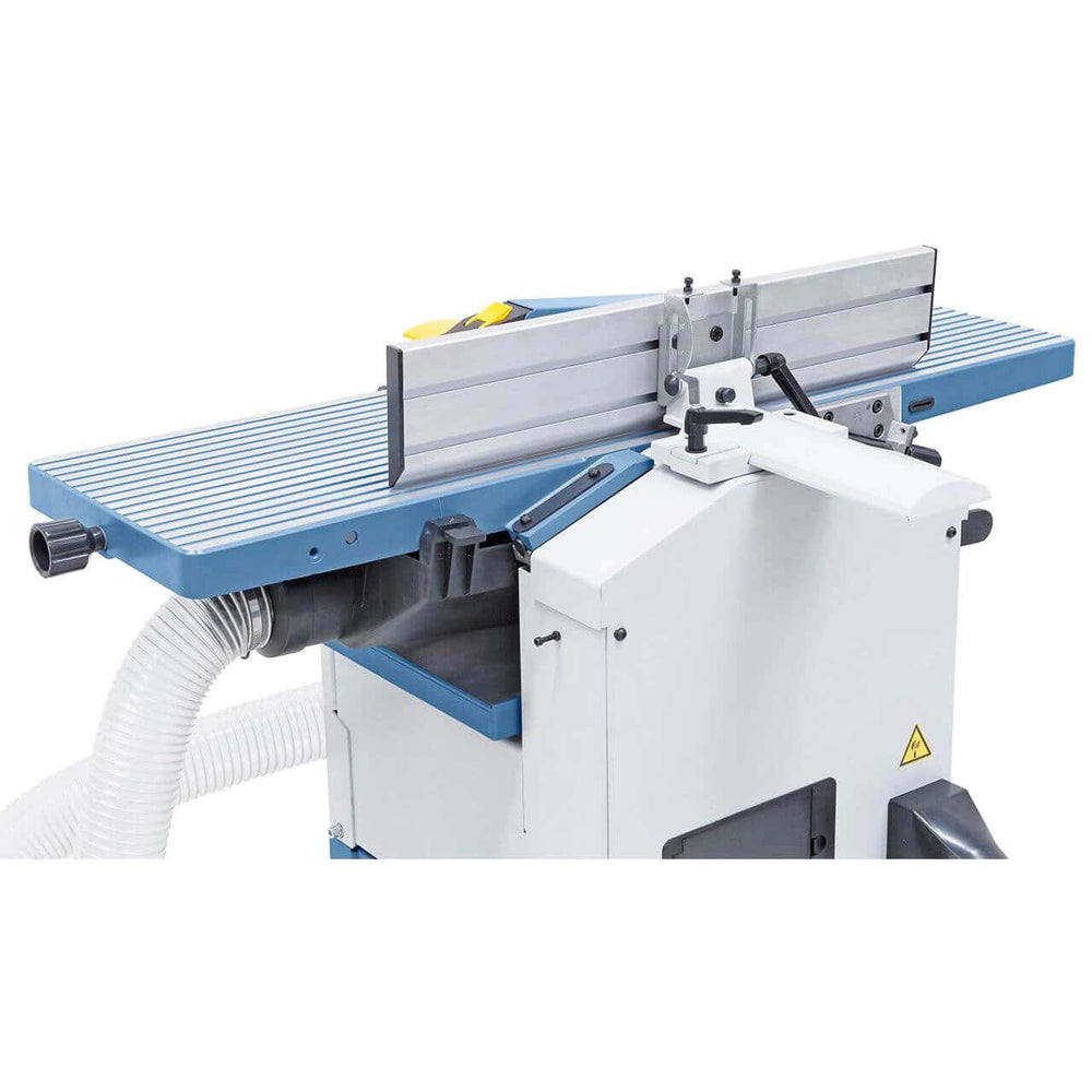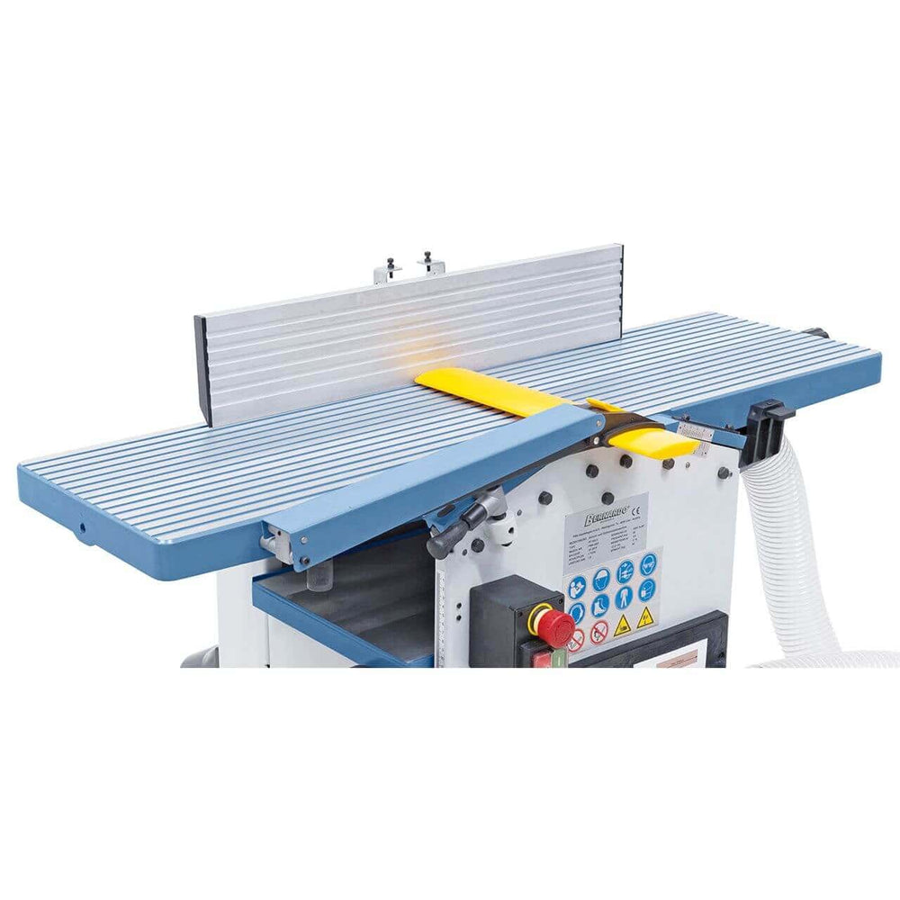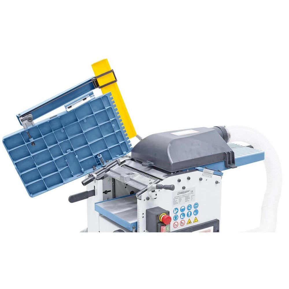 La pialla a filo e spessore Bernardo PT 305 D – 400 V è una macchina combinata precisa e versatile, progettata per artigiani e hobbisti avanzati che desiderano risultati professionali con una macchina compatta. I tavoli in alluminio rettificato offrono un’eccellente planarità, mentre il tavolo a spessore guidato su quattro colonne assicura stabilità e precisione durante la lavorazione. L’albero pialla con 2 coltelli HSS garantisce una finitura pulita e uniforme, e la recinzione solida con guida prismatica inclinabile da 90° a 45° permette lavorazioni angolari. La cappa di aspirazione integrata Ø 100/75 mm e l’aspiratore incorporato con sacco di raccolta rendono la PT 305 D pratica e pulita nell’uso. Il motore da 1,8 kW (2,4 HP) garantisce potenza sufficiente per legni duri, mentre il design compatto e la struttura stabile la rendono ideale anche per laboratori con spazi ridotti.