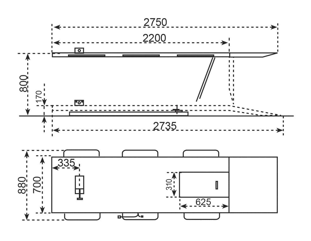 Dimensioni macchina L x P x A 2860 x 880 x 300 (940) mm