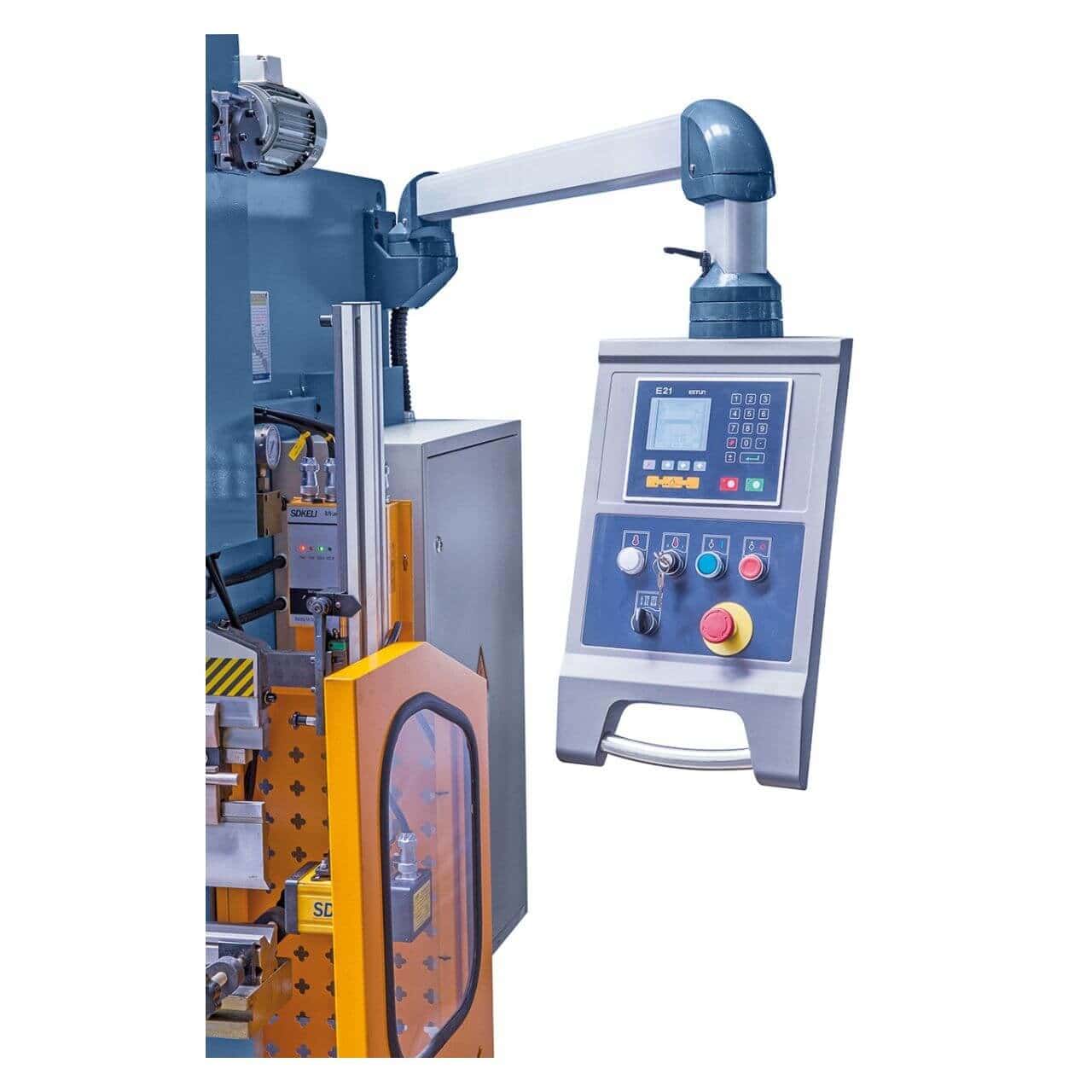 La piegatrice idraulica AKPL 1600 x 40 è progettata per garantire massima precisione e affidabilità nelle lavorazioni di carpenteria metallica. Con una forza di piegatura da 40 tonnellate e una lunghezza di lavoro di 1600 mm, rappresenta la soluzione ideale per officine che necessitano di una macchina compatta ma potente. Il sistema a doppio cilindro sincronizzato e il robusto telaio in acciaio ad alta resistenza assicurano stabilità e lunga durata. L’utensile superiore segmentato con cambio rapido riduce i tempi di allestimento, mentre il controllo numerico NC E21S rende la gestione della macchina semplice ed efficiente.