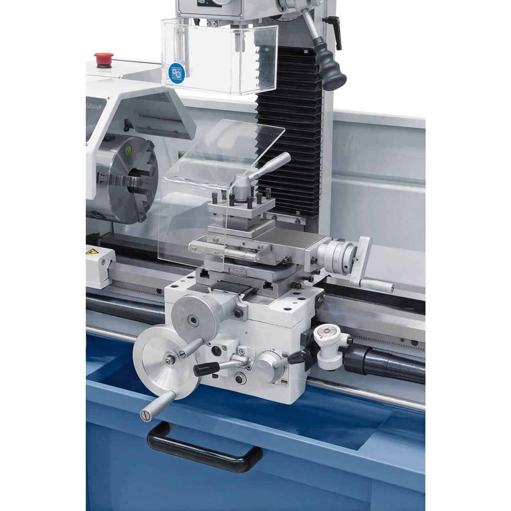 Protezione mandrino, copertura guida, parete posteriore truciolo e indicatori digitali per monitorare velocità e giri.