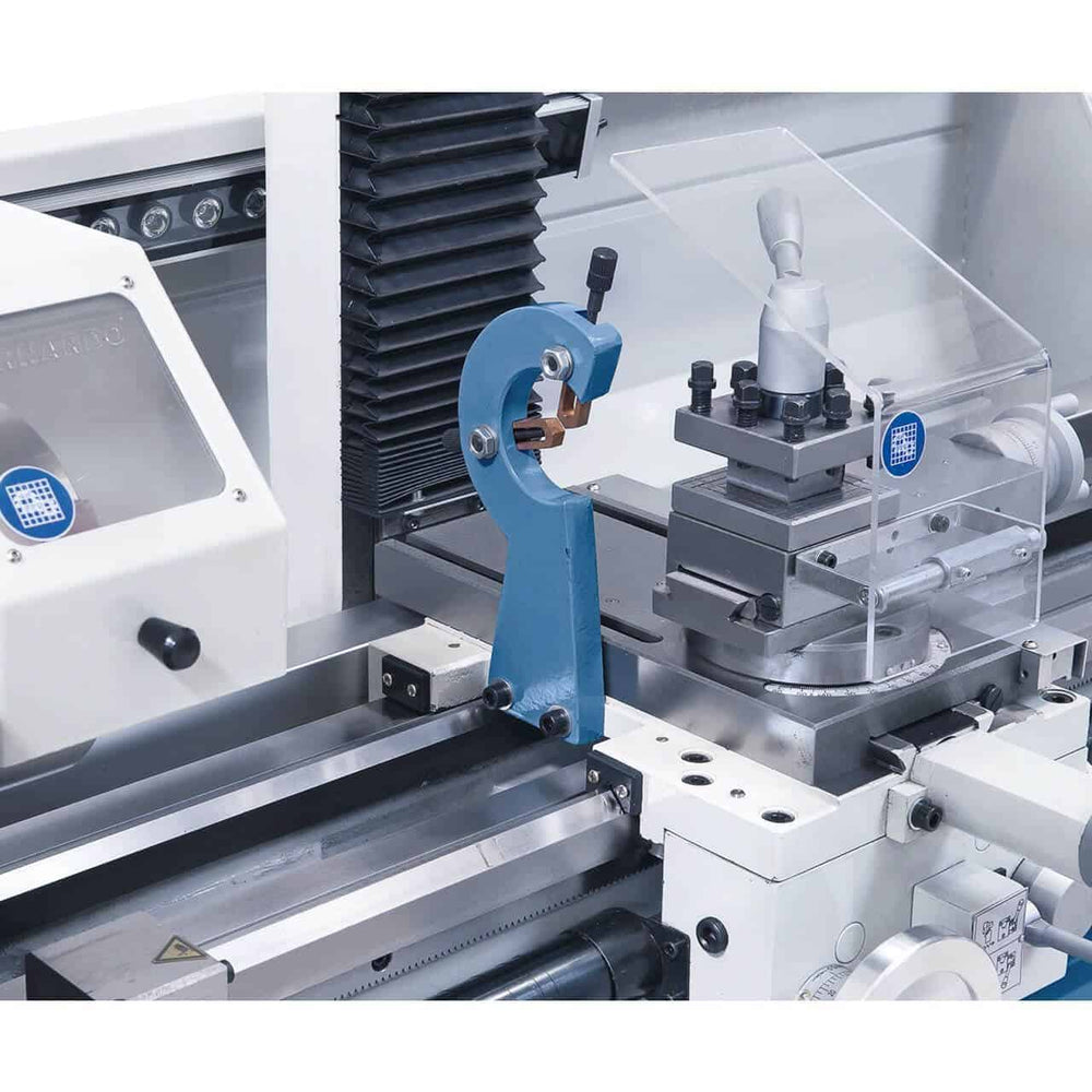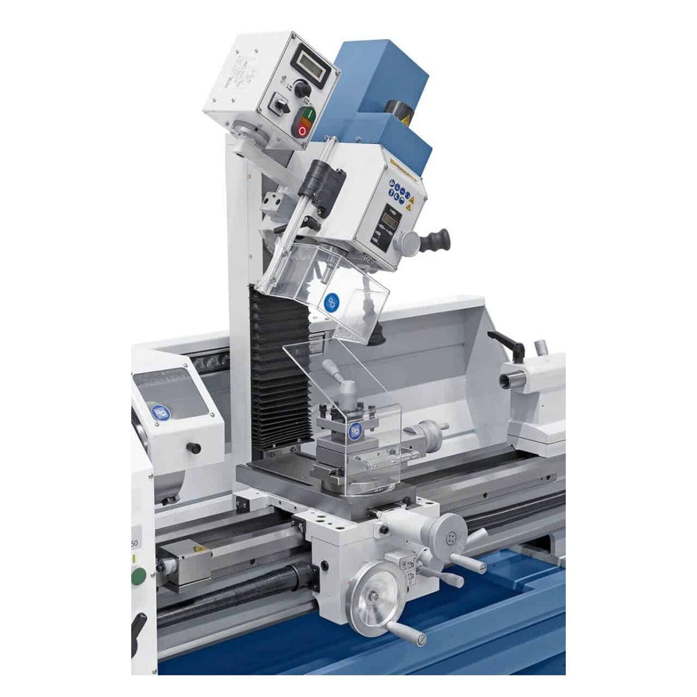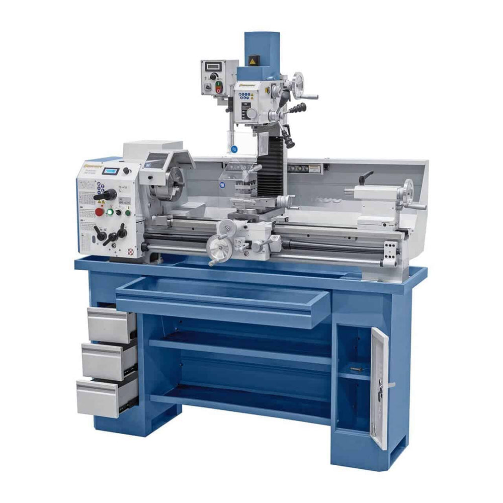 Il centro di lavoro Bernardo Proficenter 880 G Vario / 400 V unisce in un’unica macchina le funzioni di tornio e fresatrice, garantendo compattezza e versatilità. Il tornio, con passaggio barra da 38 mm e bancale prismato temprato a induzione, offre massima stabilità e precisione per lavorazioni su acciaio, metalli non ferrosi e plastica. Grazie all’inverter integrato, la velocità è regolabile in continuo da 75 a 2250 giri/min, visualizzabile sul display digitale. La fresatrice integrata dispone di testa inclinabile ±90°, velocità continua fino a 2250 rpm e capacità di foratura fino a 20 mm, ideale per lavorazioni angolari e multifunzionali. Completo di mandrino autocentrante, torretta portautensili, mandrino portapunte e numerosi accessori, rappresenta una macchina combinata ideale per officine, scuole tecniche e hobbisti avanzati.