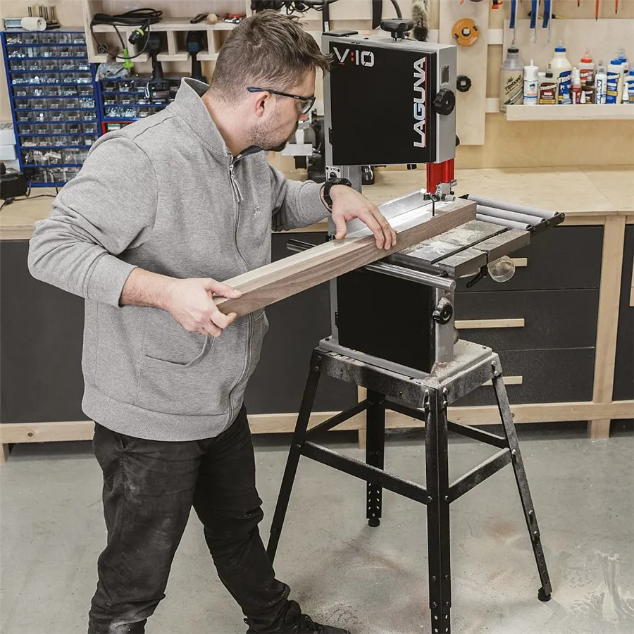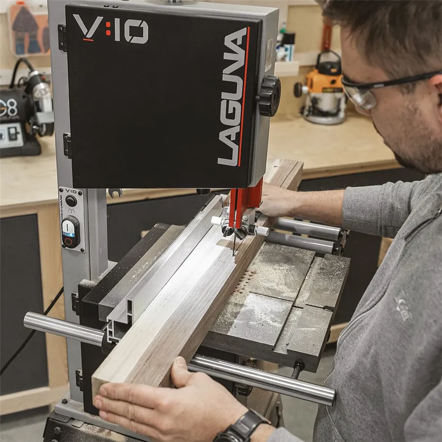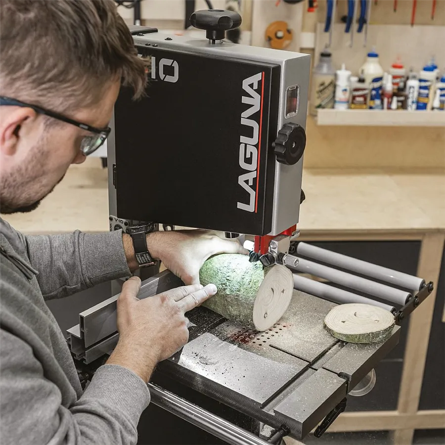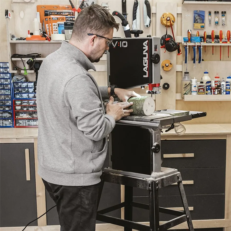 La Laguna V10 Sega a nastro 230V è una macchina compatta da 10" progettata per offrire prestazioni professionali in spazi ridotti. Equipaggiata con motore a induzione da 750 W, volani in ghisa e due velocità di taglio (462 e 1000 m/min), garantisce precisione e versatilità su legno e materiali simili. La capacità di taglio in altezza fino a 146 mm la rende ideale per hobbisti evoluti, falegnami, intagliatori, modellisti e tornitori. Il piano di lavoro in ghisa assicura stabilità e assorbimento delle vibrazioni, mentre la guida lama in alluminio anodizzato rosso con micro-regolazione permette regolazioni precise senza utensili. Il sistema di aspirazione con bocchetta magnetica sotto il piano migliora la visibilità e mantiene l’area di lavoro pulita e sicura.