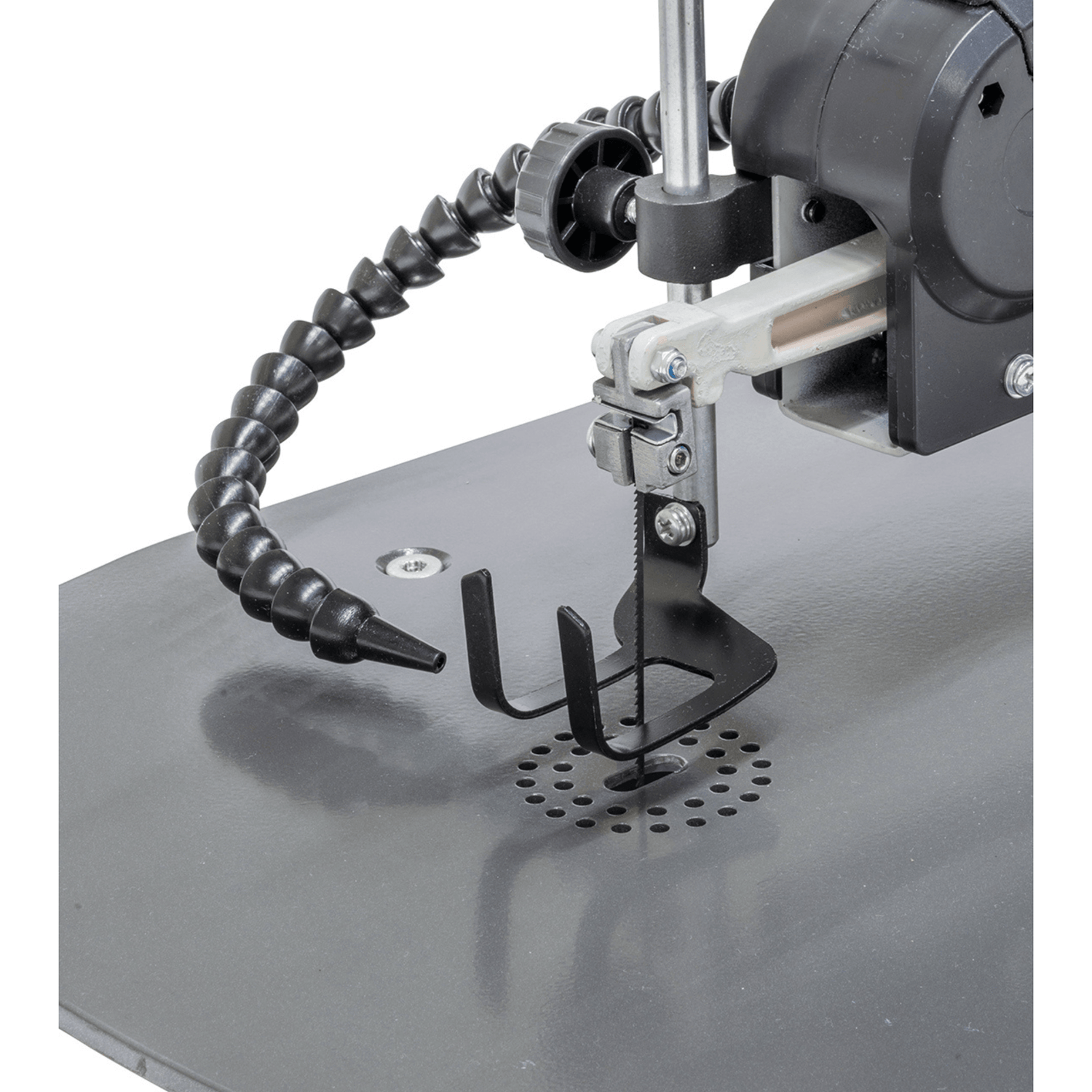 La Bernardo SS 460 N Vario / 230 V è una sega a traforo progettata per hobbisti, modellisti e artigiani che desiderano realizzare tagli di precisione su legno, plastica e metallo. Grazie alla regolazione elettronica continua delle corse (550 – 1550/min) e al braccio lungo 460 mm, permette di lavorare comodamente anche pezzi di grandi dimensioni. La tavola orientabile da -45° a +45° consente tagli inclinati precisi, mentre il sistema di aspirazione e soffiaggio mantiene l’area di lavoro pulita e ben visibile.