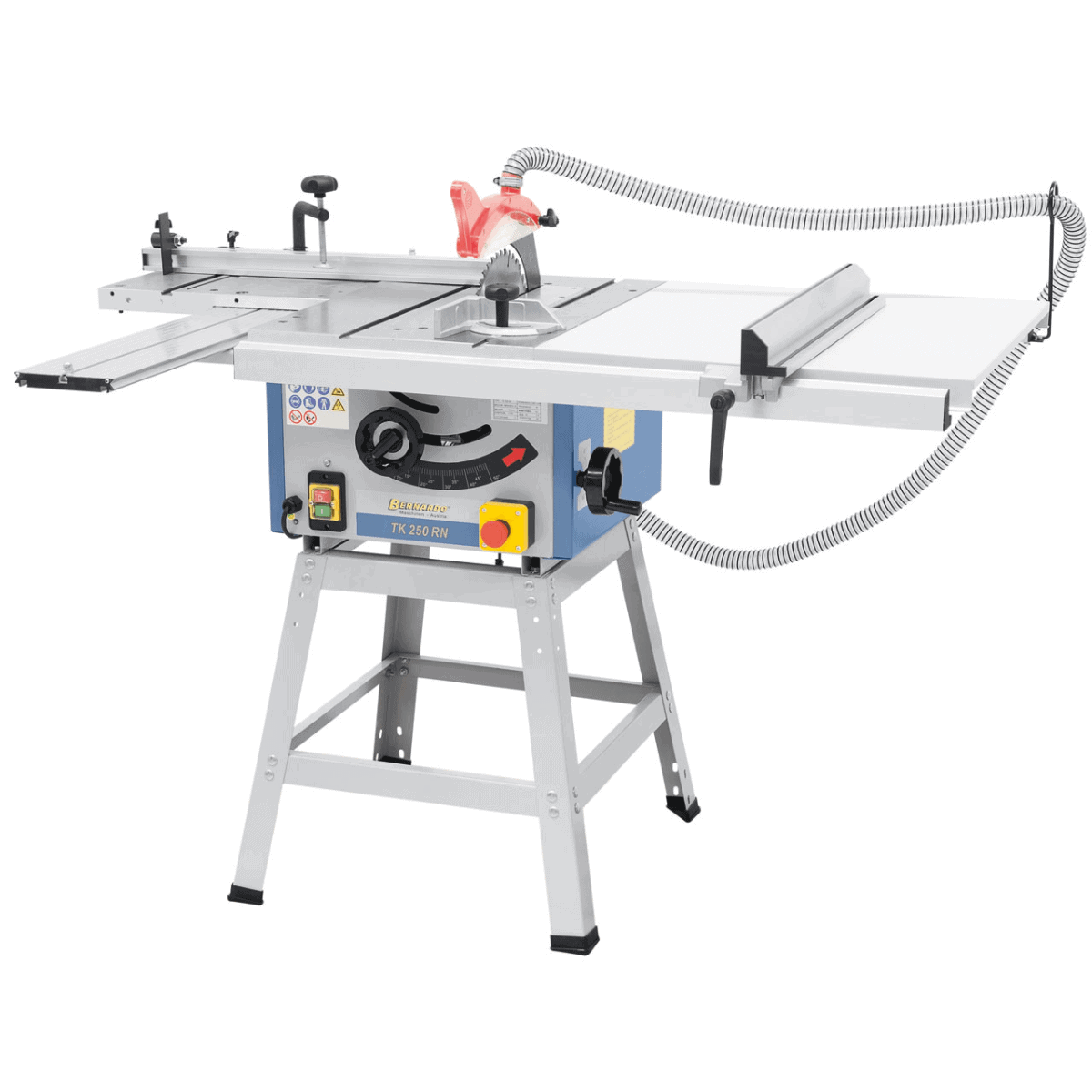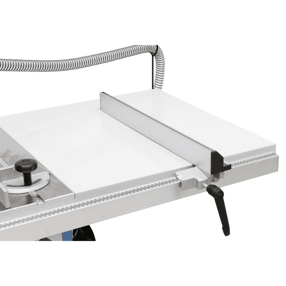 • Piano in ghisa grigia con cave a T per tagli precisi con guida angolare su entrambi i lati della lama