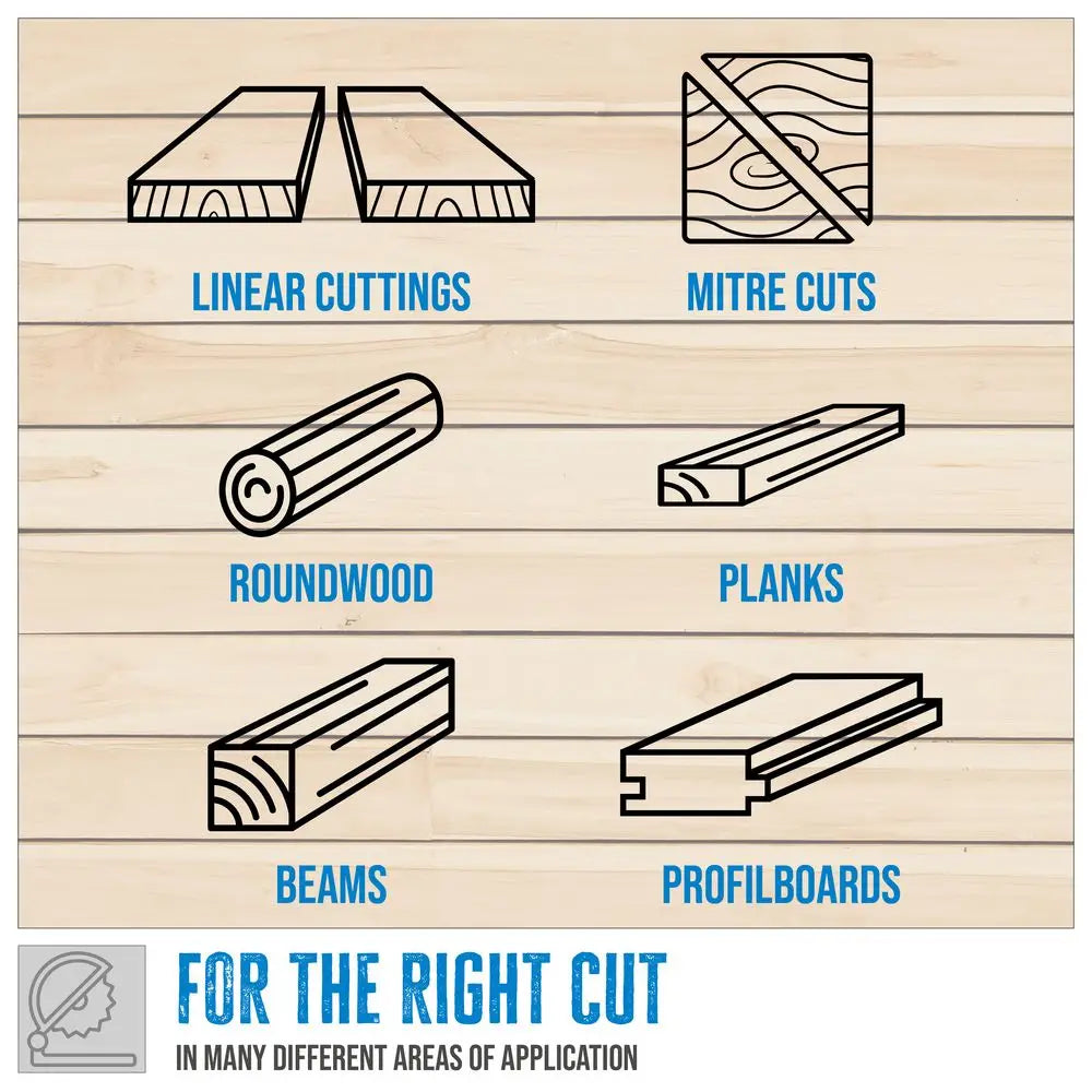 • Inclinazione lama da 90° a 45° per tagli obliqui precisi