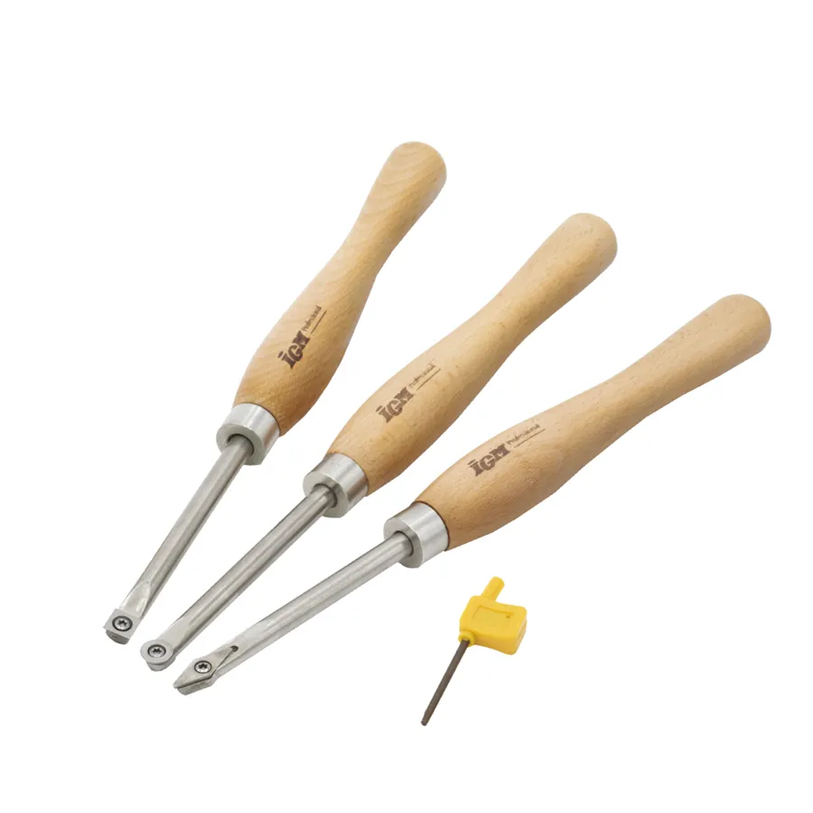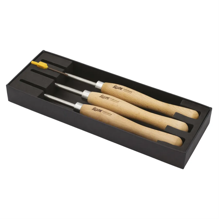 Questo set è adatto sia ai principianti sia ai tornitori professionisti e può essere utilizzato con qualsiasi tipo di legno. Il design piatto del collo in acciaio 10x120 mm consente di appoggiare lo scalpello sul supporto dell'utensile del tornio. Insieme all'impugnatura solida ed ergonomica in legno di faggio, la tornitura risulta semplice e confortevole. Questi scalpelli creano una superficie molto liscia che non richiede una levigatura complicata.