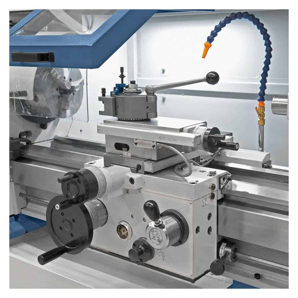 Il tornio Bernardo Compact 400 V è progettato per lavorazioni professionali ad alta precisione, ideale per officine e reparti di manutenzione. Con diametro tornibile sul banco di 400 mm e distanza tra le punte di 850 mm, offre capacità di lavorazione generose in una struttura compatta. Equipaggiato con un motore da 5,5 kW (7,5 HP) e variatore elettronico di velocità da 50 a 2500 giri/min, garantisce potenza e flessibilità operativa. Il visualizzatore digitale a 3 assi ES-12 V con display LCD e indicazione digitale della velocità semplifica il controllo dimensionale e aumenta la precisione. La ricca dotazione standard include mandrino autocentrante, piastra frontale da 320 mm, lunette, torretta portautensili a 40 posizioni con inserti, dispositivo refrigerante e protezioni CE. Un tornio compatto ma robusto, ideale per chi cerca affidabilità e performance in spazi ridotti.