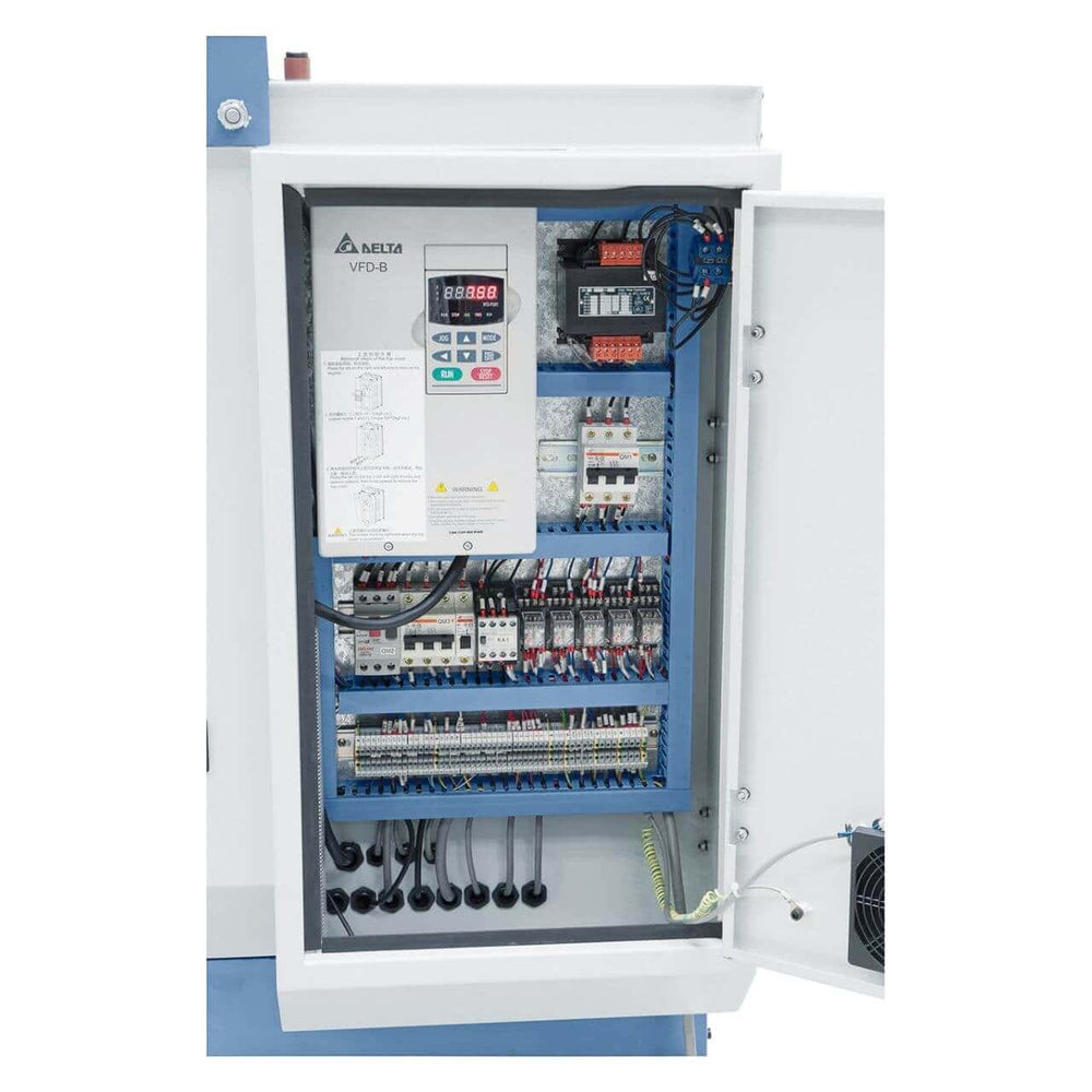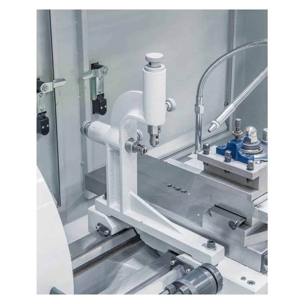 Il tornio Bernardo Compact 410 x 1000 V-constant è progettato per lavorazioni professionali e di alta precisione, ideale per officine e reparti di manutenzione. Con un diametro tornibile sul banco di 420 mm e una distanza tra le punte di 1000 mm, permette la lavorazione di pezzi di medie e grandi dimensioni. Il potente motore da 5,5 kW (7,5 HP), abbinato al variatore elettronico di velocità da 30 a 3000 giri/min, assicura la massima flessibilità di lavorazione. Dotato di visualizzatore digitale a 3 assi ES-12 S con indicazione della velocità, semplifica la gestione delle operazioni e garantisce precisione costante. La ricca dotazione di serie include mandrino autocentrante, piastra frontale da 350 mm, lunette, torretta portautensili a 40 posizioni, dispositivo refrigerante e pedale con freno CE. Una soluzione robusta e completa per esigenze professionali.