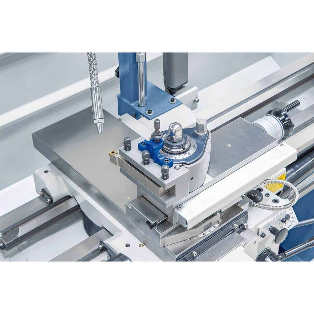 Il tornio parallelo Bernardo Smart 410 x 1000 V-constant è progettato per chi cerca una macchina compatta ma potente, ideale per officine meccaniche e reparti di produzione. Con una distanza tra le punte di 1000 mm e altezza punte di 210 mm, permette la lavorazione di pezzi fino a Ø 420 mm sul banco e Ø 580 mm in gola. Il foro mandrino da 52 mm con attacco DIN 55029 D1-6 garantisce versatilità, mentre la velocità continua variabile da 30 a 3000 giri/min (in due gamme) offre massima flessibilità. Completo di visualizzatore digitale ES-12 S con indicazione velocità, mandrino autocentrante 200 mm, torretta a 40 posizioni e numerosi accessori inclusi, lo Smart 410 x 1000 V-constant assicura prestazioni elevate, sicurezza e precisione, con un motore da 5,5 kW e un peso ridotto di 1220 kg.