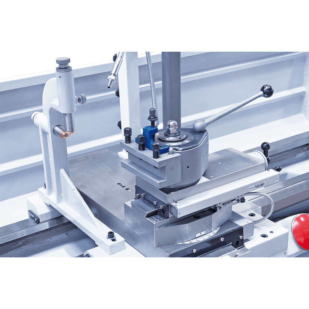 Il tornio parallelo Bernardo TITAN 560 x 1500 Pro Vario combina potenza, precisione e robustezza in un’unica macchina professionale. Con una distanza tra le punte di 1500 mm e un’altezza punte di 280 mm, consente di lavorare pezzi fino a Ø 560 mm sul banco e Ø 785 mm in gola. Il foro mandrino da 105 mm con attacco DIN 55029 D1-8 permette la lavorazione di elementi di grandi dimensioni, mentre l’inverter di frequenza assicura velocità variabile continua (25–1500 giri/min in 2 gamme). Grazie al visualizzatore digitale a 3 assi, mandrino autocentrante da 315 mm e numerosi accessori inclusi, questo tornio è ideale per officine meccaniche e reparti produttivi che richiedono massima affidabilità. Con il suo motore da 7,5 kW e peso di 2420 kg, il TITAN 560 Pro Vario garantisce stabilità e prestazioni elevate.