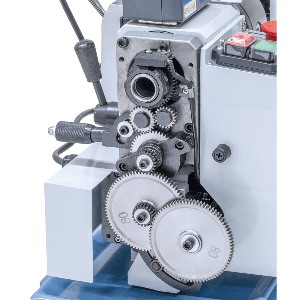 Il tornio è dotato di un motore DC brushless da 450 W, che garantisce fluidità di rotazione e coppia elevata a basse velocità.