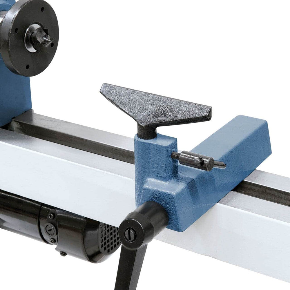 Il tornio include: 2 poggiattrezzi, 2 piastre frontali, punta trascinatrice, contropunta rotante, regolazione continua della velocità e utensili.