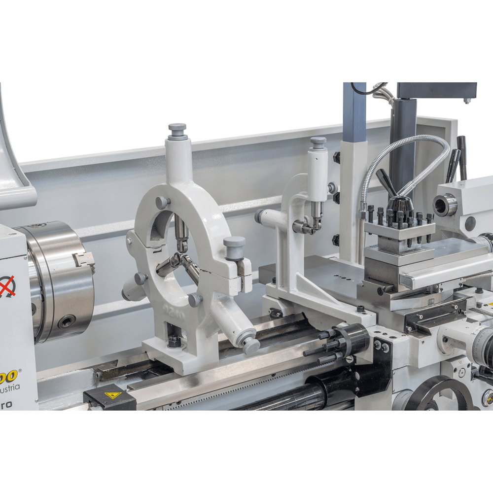 Il tornio Bernardo Smart 410 x 1500 Pro è una macchina robusta e versatile, progettata per lavorazioni di precisione su pezzi medio-grandi. Con distanza tra le punte di 1500 mm e altezza punta di 210 mm, permette di tornire diametri fino a Ø 420 mm sul banco e Ø 580 mm sul gap. Il mandrino con foro da 52 mm e attacco D1-6 assicura rigidità e affidabilità nelle lavorazioni più impegnative. La gamma di velocità da 45 a 1800 giri/min (16 step), insieme a un’ampia scelta di filettature metriche e in pollici, offre grande flessibilità. Equipaggiato con motore da 3,0 / 4,5 kW, freno magnetico, avanzamenti automatici e visualizzatore digitale a 3 assi ES-12 V, garantisce precisione e sicurezza. Con peso di 1400 kg e struttura compatta ma potente, lo Smart 410 x 1500 Pro è ideale per officine meccaniche, laboratori e reparti produttivi.