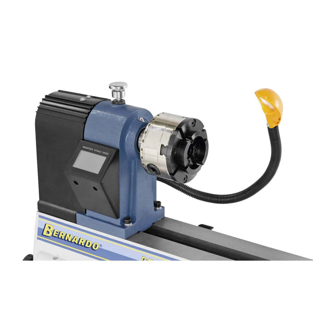 Sono inclusi: poggiattrezzi da 150 mm, piastra da 80 mm, punta trascinatrice da 25 mm, contropunta MT2, regolazione continua della velocità, indicazione LED, luce di lavoro e utensili.