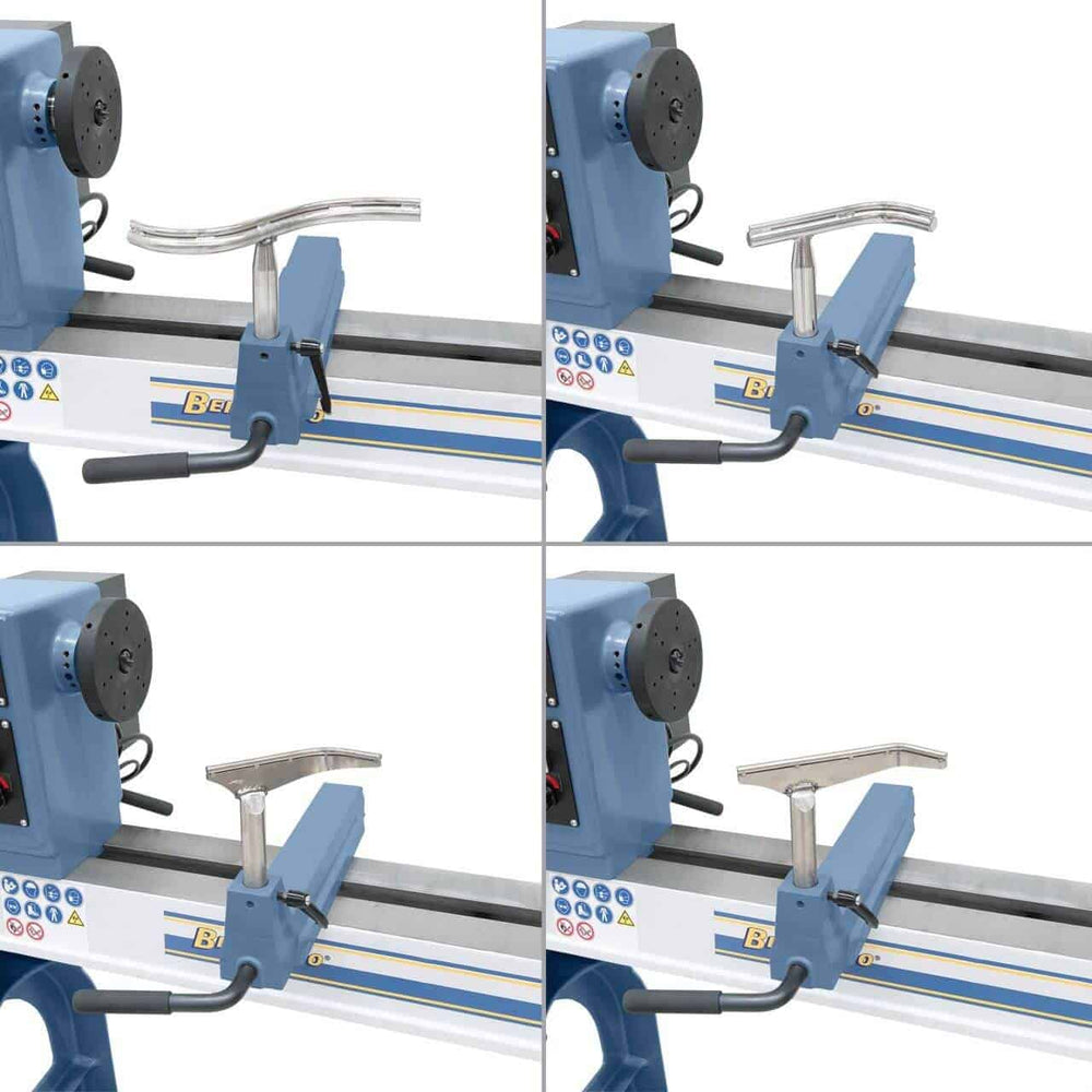 Il tornio viene fornito con poggiattrezzi, piastra frontale, contropunta rotante, punta trascinatrice, inverter Delta, display LED e utensili.
