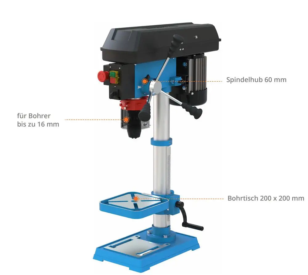 Trapano a colonna da banco Guede GTB 16/612 R+L – 600W, 5 velocità, rotazione destra/sinistra
