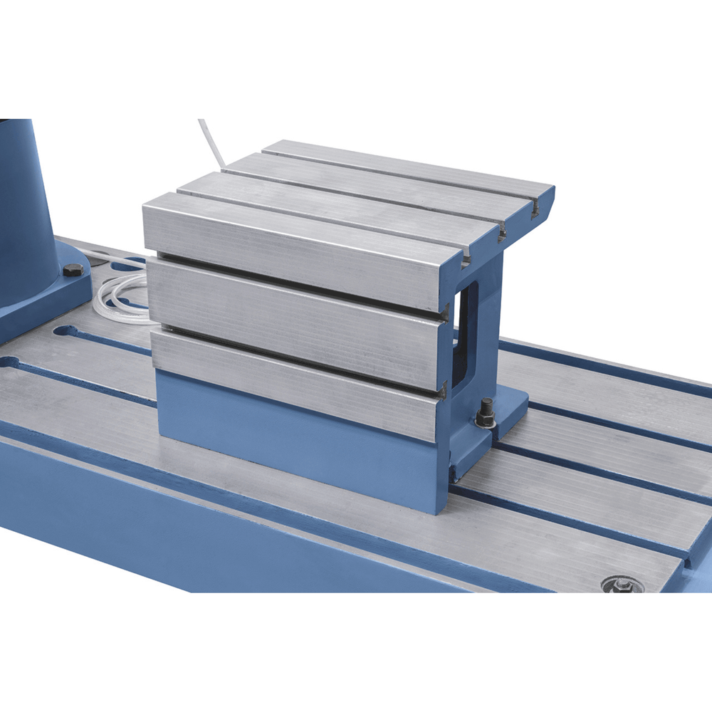Le guide temprate e rettificate sul braccio radiale, la regolazione elettronica della profondità di foratura e il display digitale con lettura in mm o pollici garantiscono la massima precisione. Una macchina completa e robusta, perfetta per le esigenze di officine meccaniche e aziende di carpenteria pesante.