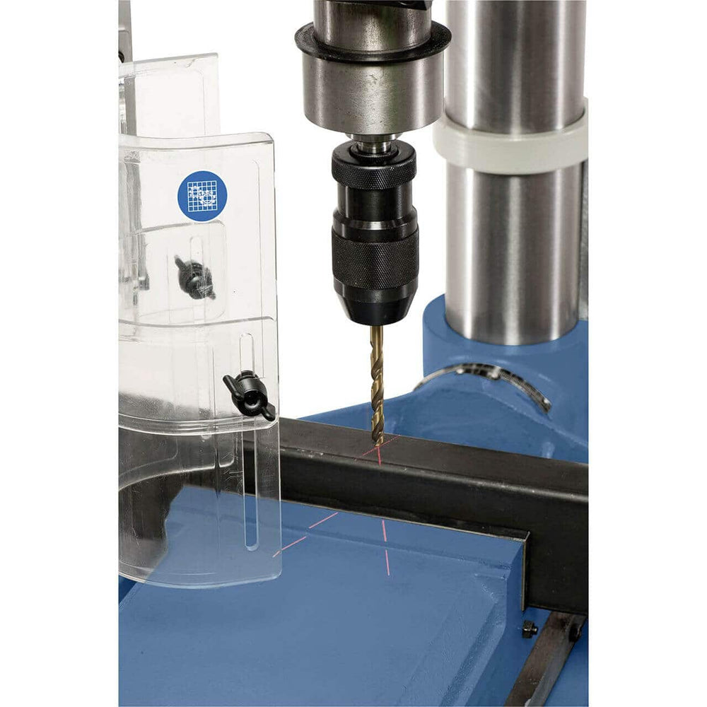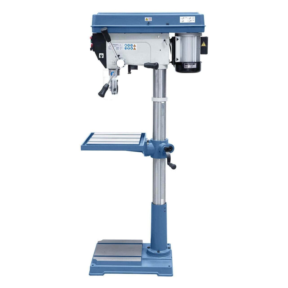 La tavola inclinabile a 360° con regolazione in altezza tramite cremagliera e la base con cave a T permettono di fissare anche pezzi sovradimensionati. Un trapano compatto e moderno, ideale per officine e laboratori che richiedono precisione e durata.